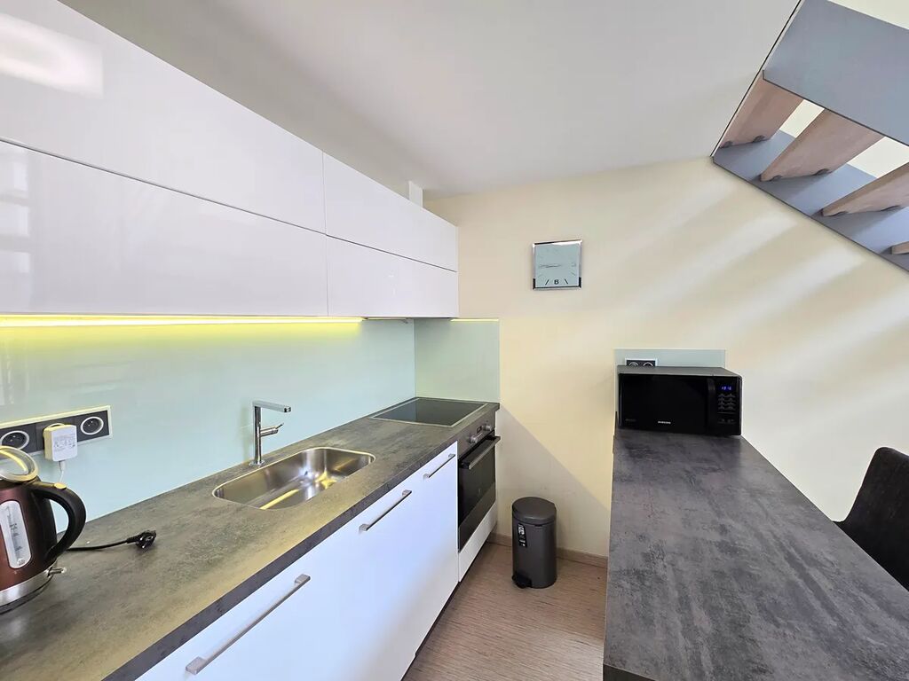 Exkluzivnĕ nabízíme krásný svĕtlý kompletnĕ vybavený loftový byt v rezidenční novostavbĕ na klidném místĕ v Libni s vynikajcí dostupností do centra mĕsta.Byt je vybaven moderní kuchyňskou linkou s vestavĕnými spotřebiči včetnĕ myčky nádobí.Dále vybaveno nábytkem viz fotografie, pračkou v koupelně. V ložnici jr také velmi prostorná praktická šatna.Dále k bytu patří vnitřní parkovací stání v domĕ.K dispozici od 1.listopadu 2025