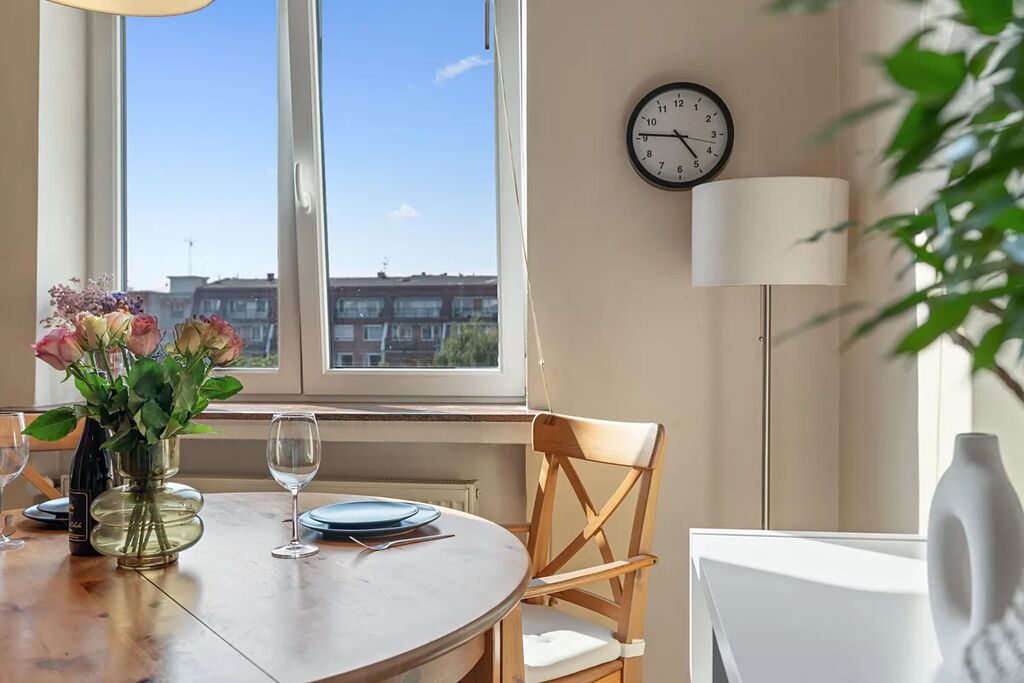 Okna směřují na dvě světové strany, díky čemuž je byt přirozeně prosvětlený po celý den.