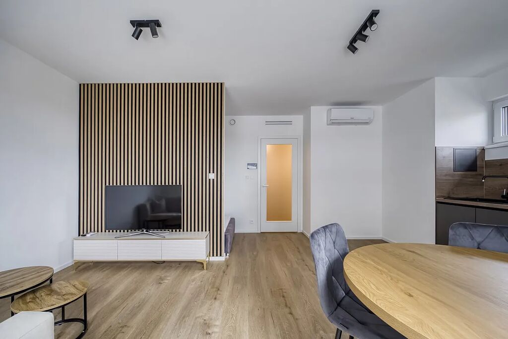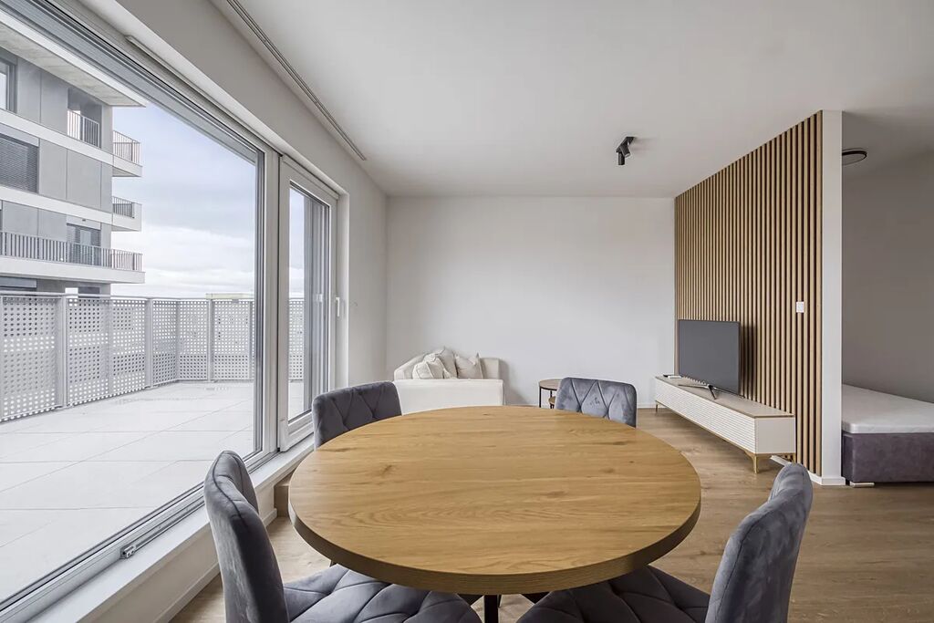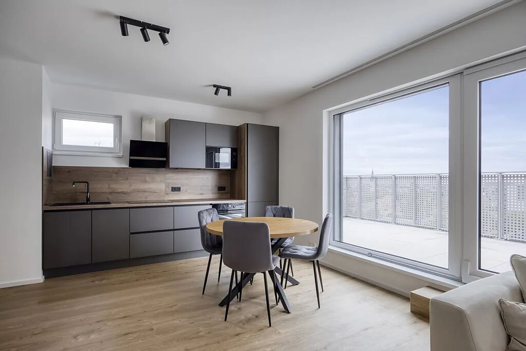 Jednotka je vybavená kvalitním designovým nábytkem a kuchyňskou linkou a je připraven k nastěhování ihned.