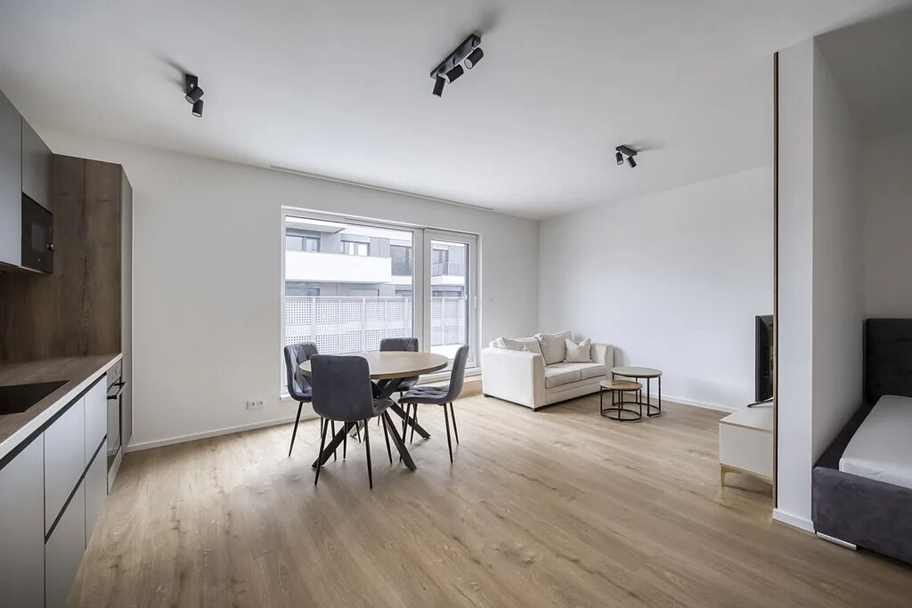 Home Real Estate nabízí k dlouhodobému pronájmu zcela nový, kompletně zařízený byt 1+kk (40 m²) s prostornou terasou o velikosti 16,5 m² + sklep.
