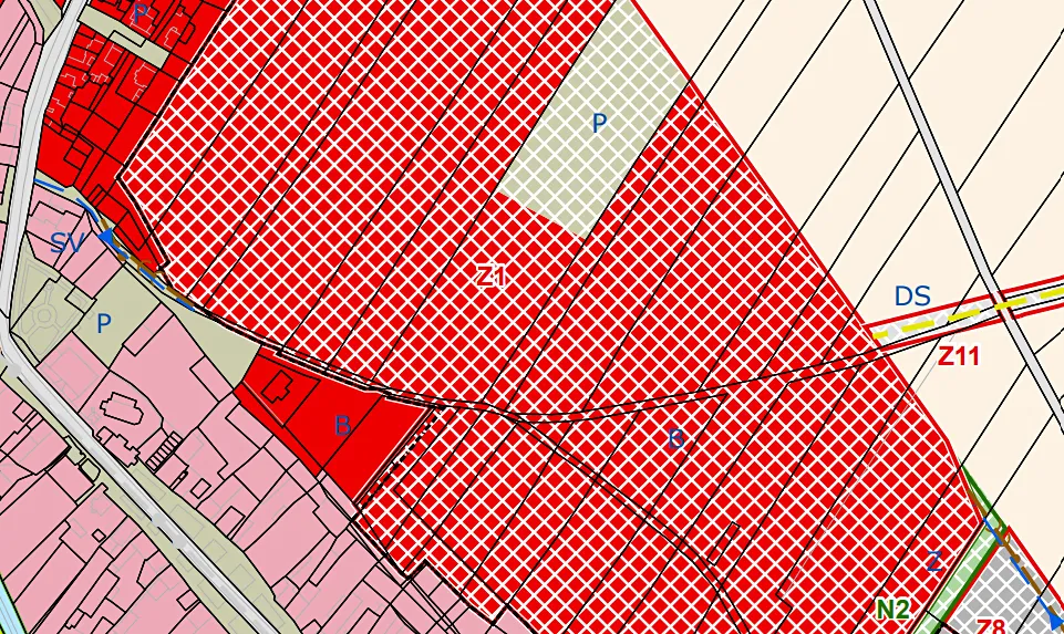 Pozemek náleží do plochy Z1 (v lokalitě je notné vybudovat kanalizaci). Plochu Z1 je možné zastavět až po zastavění ploch Z2 a Z3 alespoň ze 70%. Plocha Z1 je dále podmíněna nutnou realizací dopravního napojení plochami Z10 a Z1.