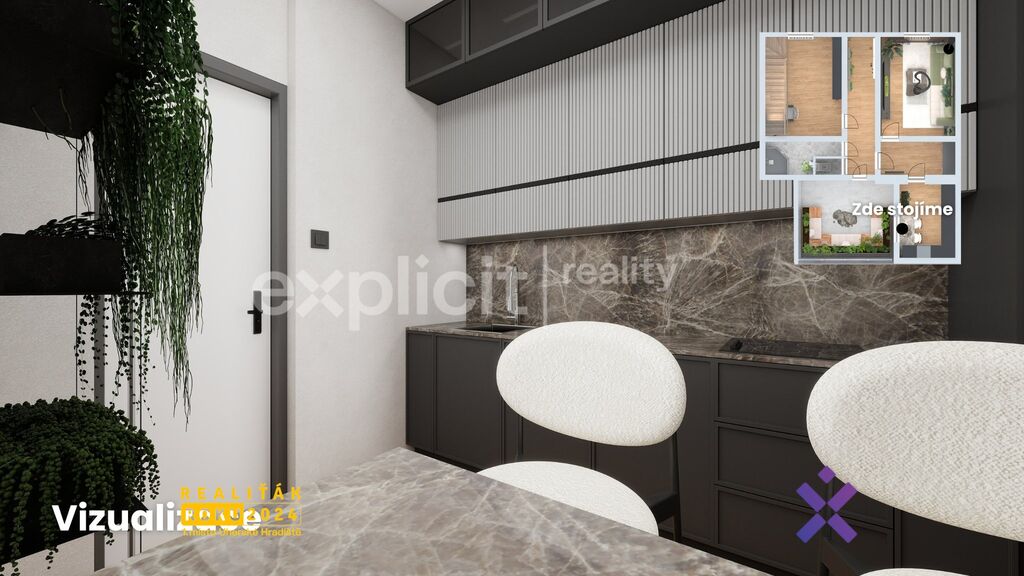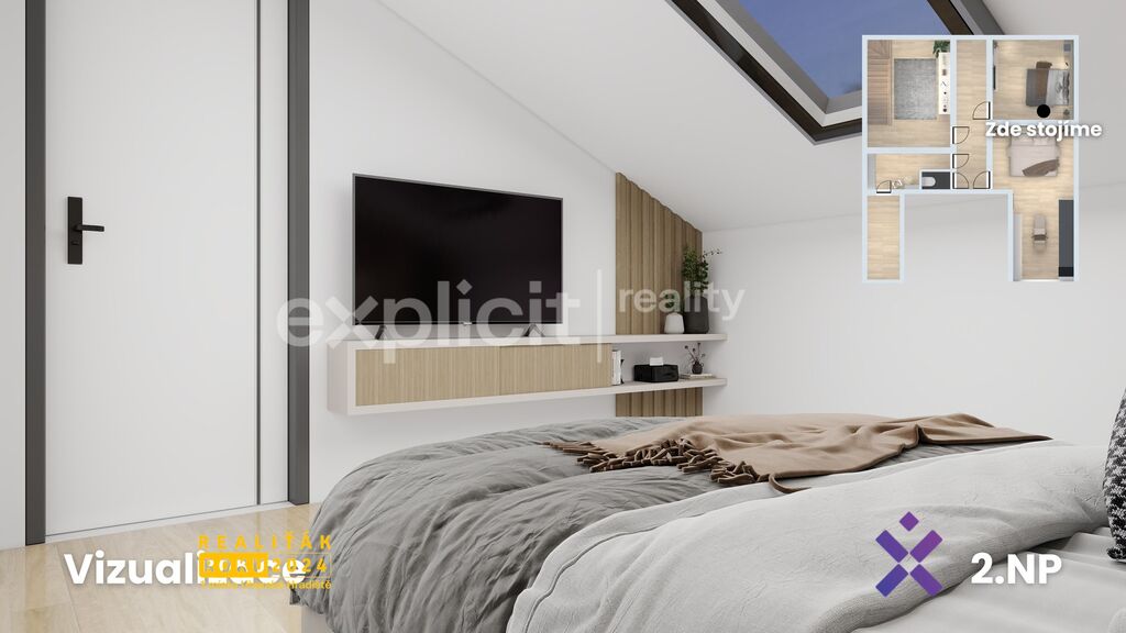 Vizualizace a vyobrazení nemovitosti a pozemku jsou pouze ilustrativní. Závazné údaje o hranicích pozemku jsou uvedeny v katastrální mapě.
