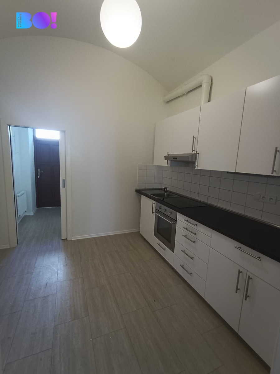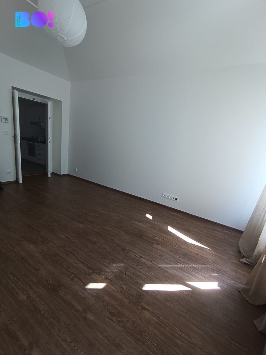 Byt se pronajímá nezařízený, což nabízí možnost vybavit si ho dle vlastních představ. Dispozice zahrnuje prostorný pokoj, samostatnou kuchyň, koupelnu se sprchovým koutem a WC, a předsíň. Interiér prošel nedávno rekonstrukcí, díky které působí moderně a čistě.