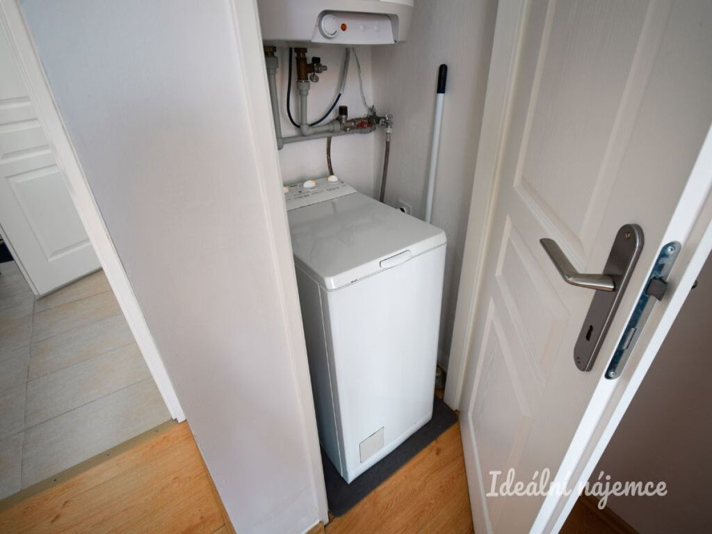 Byt se nabízí částečně vybavený. Kuchyně disponuje elektrickou troubou, sporákem a digestoří. V kuchyni je i lednice, mikrovlnná trouba a jídelní stůl s židlemi. Součástí ložnice je patrová postel, pohovka a konferenční stolek. V koupelně najdeme sprchový kout, umyvadlo a toaleta je oddělená. Pračka je umístěna na chodbě.