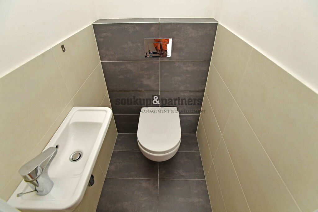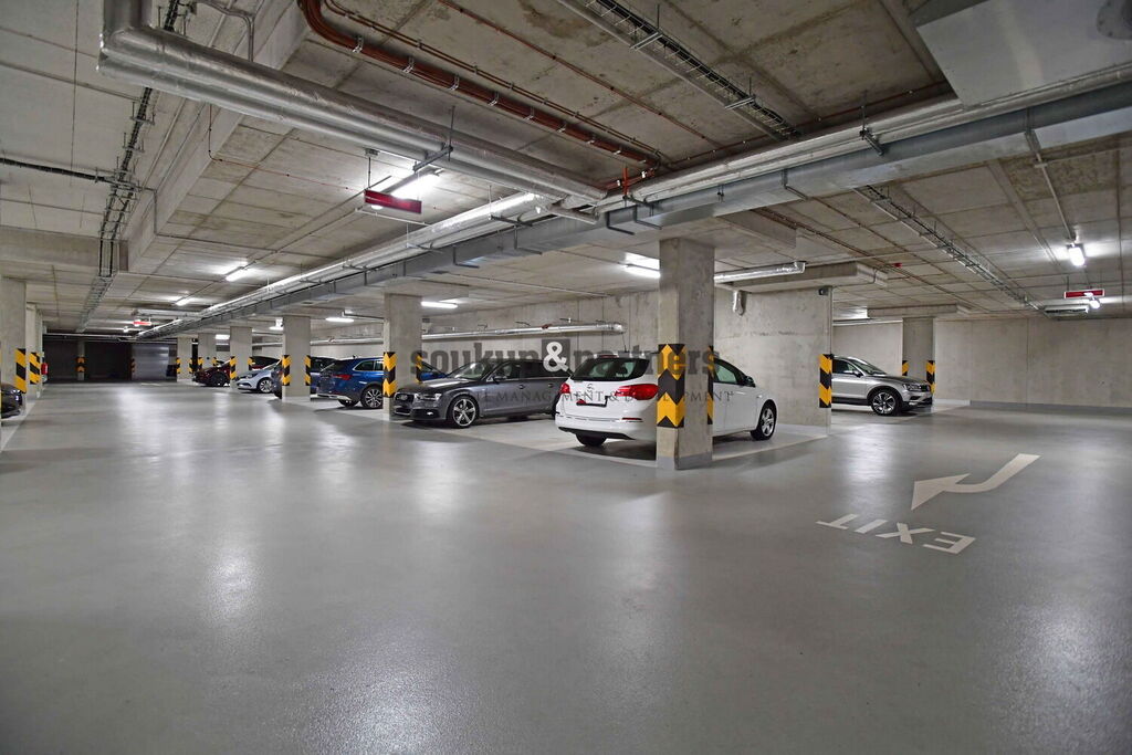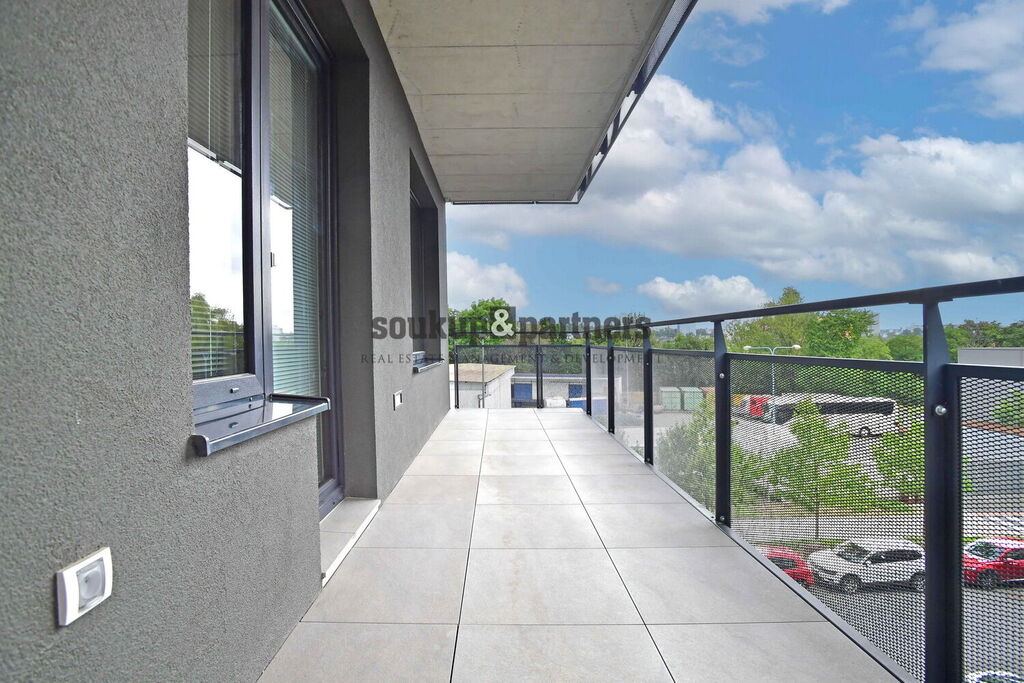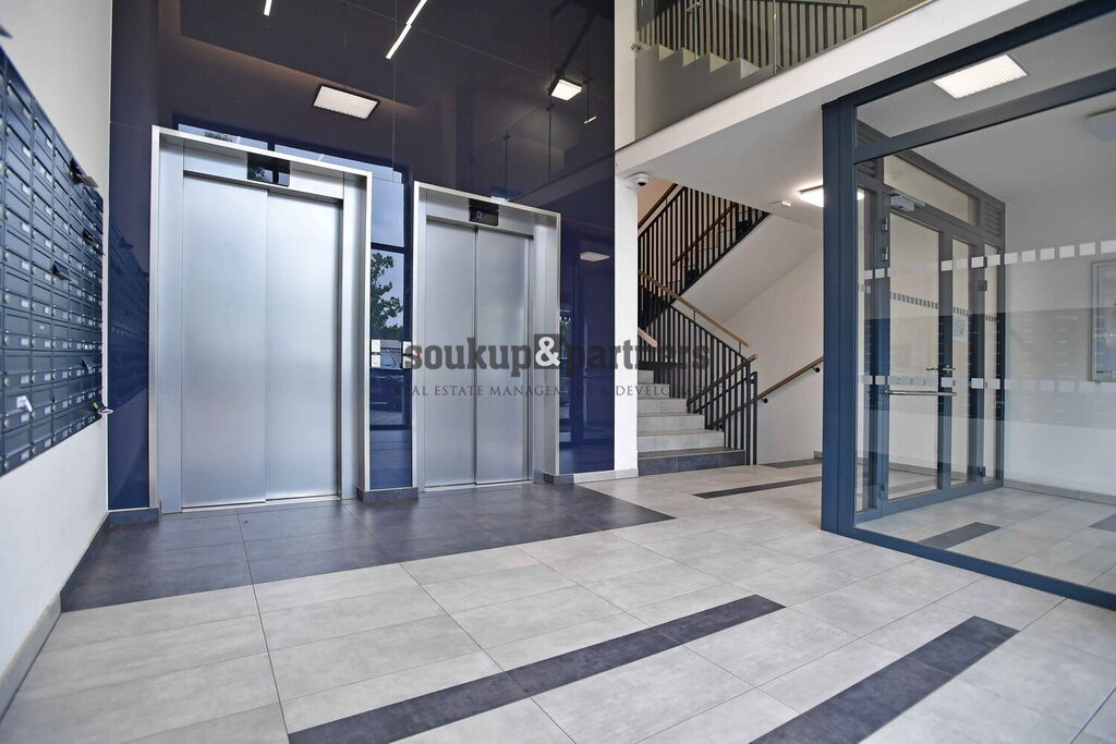 Součástí pronájmu je velká terasa (12 m²) s výhledem do klidného vnitrobloku, garážové stání a sklep v suterénu domu.