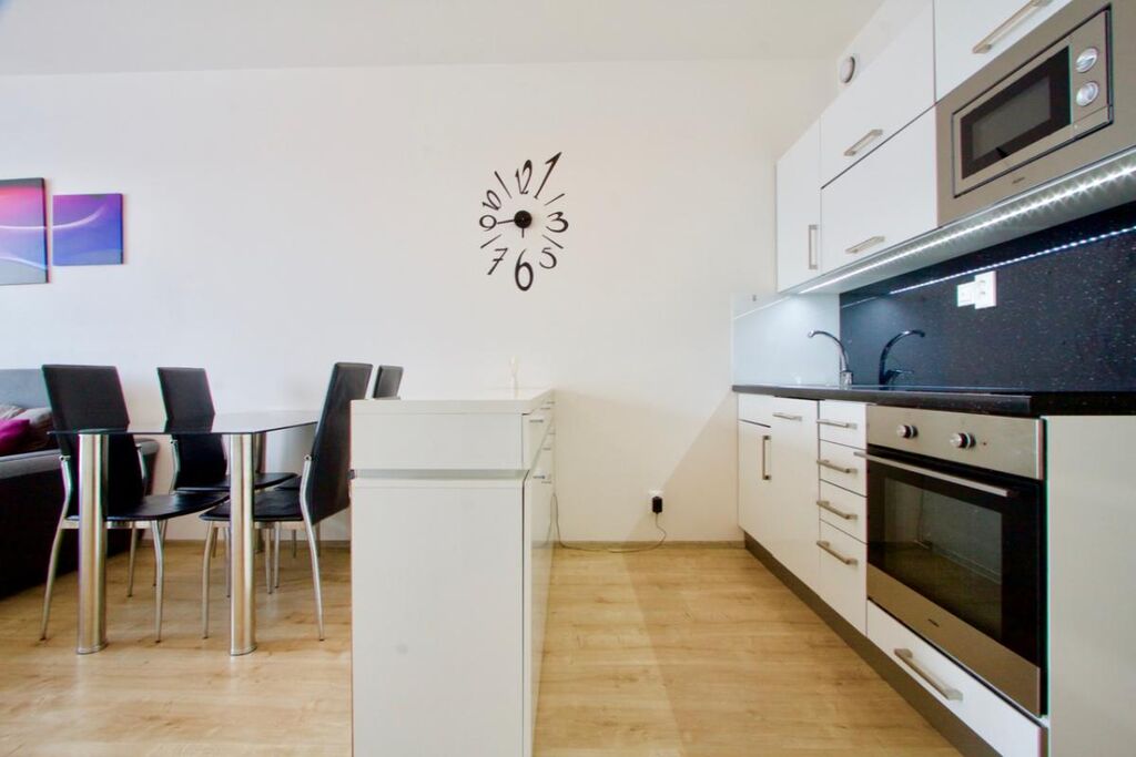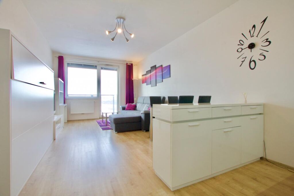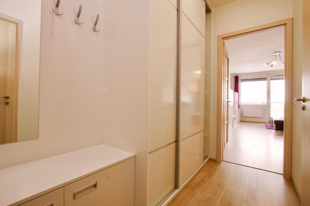 Nabízíme k prodeji zařízený byt, který se nachází v 19. NP bytového domu Eliška v pražských Vysočanech.