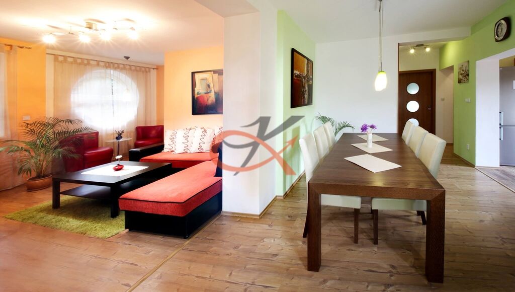 Nabízíme k pronájmu nadstandardně vybavený rodinný dům se třemi samostatnými apartmány v atraktivní lokalitě na nábřeží Dukelských hrdinů v Rožnově pod Radhoštěm. Dům se nachází v klidné okolní zástavbě rodinných domů s výhledem do městského parku a na řeku Bečvu, v docházkové vzdálenosti od centra města i veškeré občanské vybavenosti.