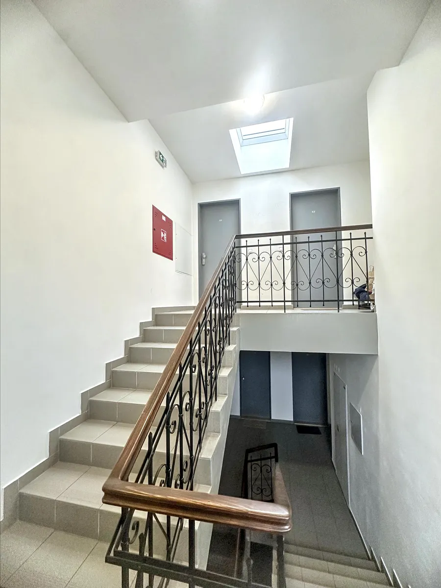 Byt vznikl jako zcela nová půdní vestavba v kompletně zrekonstruovaném domě a nachází se v 5. nadzemním podlaží s výtahem. Dům prošel kompletní rekonstrukcí před 2–3 lety včetně veškerých společných prostor. Ve vnitrobloku je zeleň a plánuje se další úprava prostoru (možnost instalace cykloboxů, posezení).