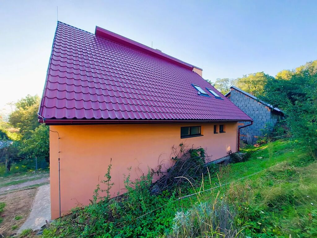 Nabízíme na prodej RD z roku 1989, jedná se o zděný, nepodsklepený dům se dvěma nadzemními podlažími a využitým podkrovím, situovaný v klidné okrajové části obce. Objekt následně prošel dalšími rekonstrukcemi a modernizacemi. V roce 2010 byla po požáru objektu provedena oprava střešní konstrukce, položena nová střešní krytina, fasáda, plastová okna a částečná modernizace vnitřního vybavení. CP pozemků činí 2144 m2. Dům je napojen na elektřinu, kanalizaci a obecní vodovod, interiér domu je vhodný k celkové modernizaci. Za domem se nachází 2 vedlejší stavby, využívané ke skladování a k chovu domácích zvířat. Vytápění domu je zajištěno kotlem na tuhá paliva umístěným v přízemí domu a ohřev teplé vody elektrickým bojlerem. Průkaz energetické náročnosti budovy zatím nebyl dodán, proto je uvedena třída G.