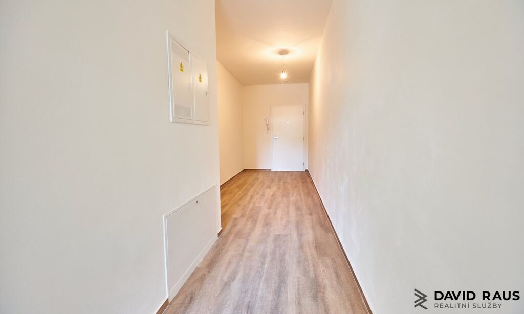 První naše kroky vedou do vstupní předsíně, která nabízí dostatek místa k umístění nejen botníku, nástěnného věšáku na odkládání svršků, ale i velké šatní skříně. Chodbou dále vstupujeme do prvního obytného pokoje, který lze využít jako pracovnu, či dětský pokoj. Z pokoje zpět na chodbu, pokračujeme dále, míjíme po pravé straně samostatné dveře do koupelny se sprchovým koutem a dveře vedoucí na samostatné WC. Skvělý výběr světlých tónů obkladů a dlažby, dává prostor pro kreativitu. Kdo má rád více barev, oživí tak prostor barevnými doplňky. Ještě než vstoupíme do obývacího pokoje s kuchyňským koutem, vcházíme do druhého obytného pokoje - ložnice. Oba samostatné pokoje jsou slunné a prostorné, následné uspořádání nábytku pro Vás bude snadné. Vinylové podlahy v příjemných, teplých tónech, v dekoru dřeva s elegantní bílou výmalbou stěn jsou skvělým základem pro jakýkoliv styl bydlení. Snadno si tak zařídíte prostory podle svého vkusu.