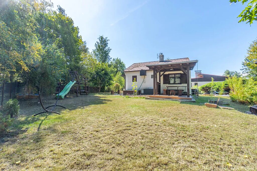 Samotná nemovitost se skládá ze vstupního prostoru, obývací pokoje, kuchyně, ložnice a WC. K příjemnému posezení vám poslouží pergola napojená přímo na chatu.