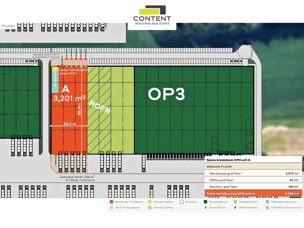 - samostatné jednotky od cca 3000 m² - 7461 m²