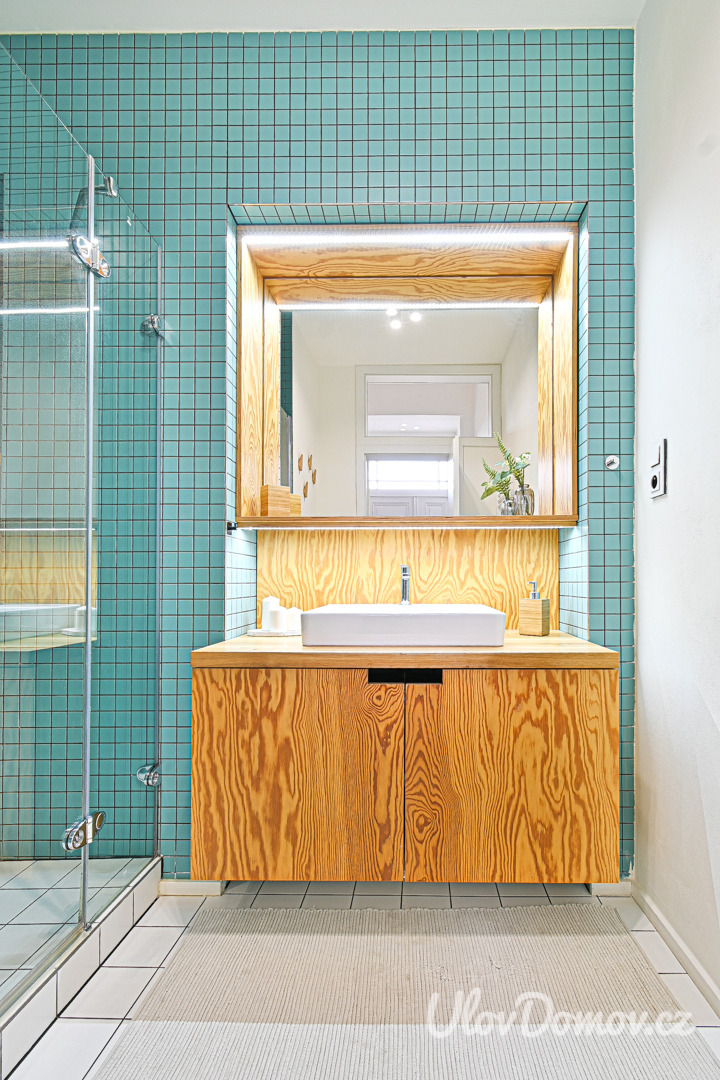 Vestavěný dřevěný nábytek byl vyroben na míru truhlářem dle návrhu architektky.