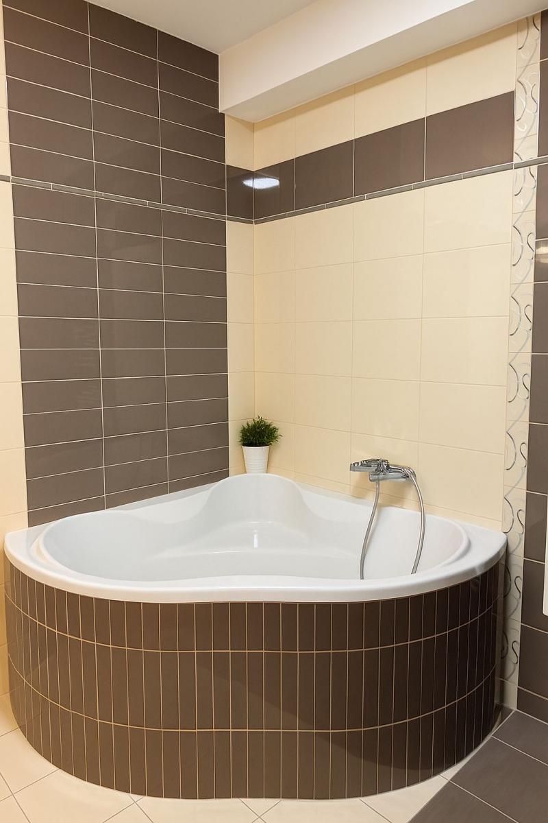 Zařízení bytu : kuchyňská linka, sklokeram.varná deska, elektr.trouba, digestoř, lednice. V koupelně rohová vana, umyvadlo, přípojka na pračku a toaleta,