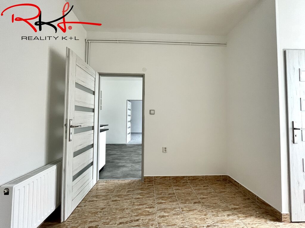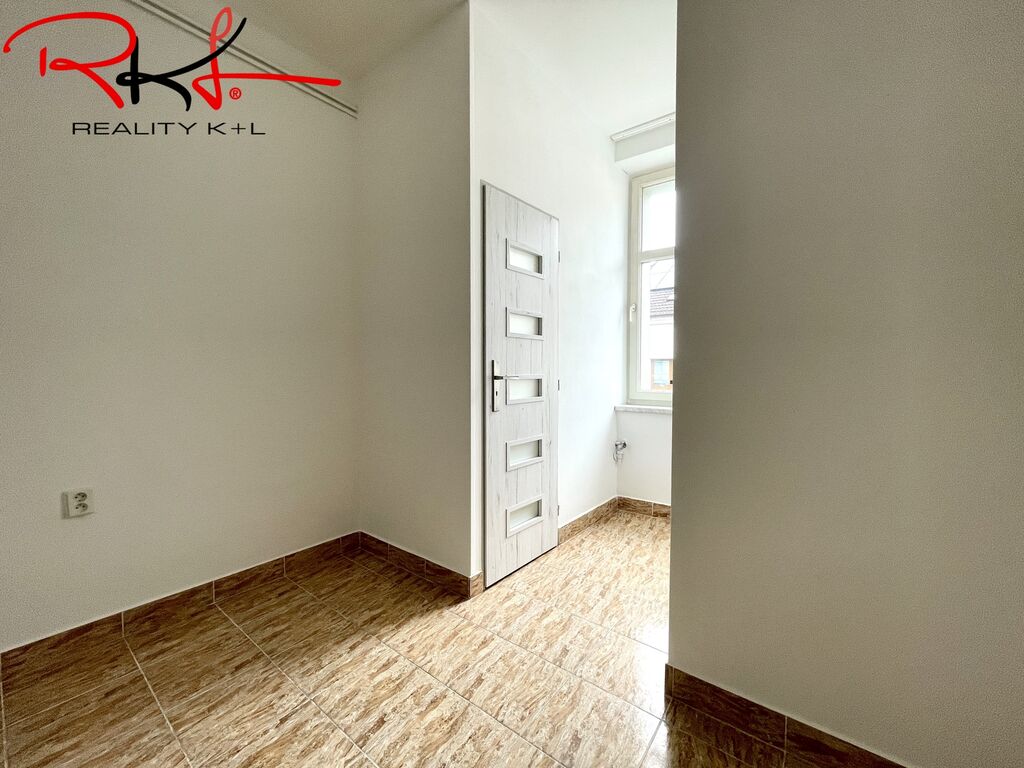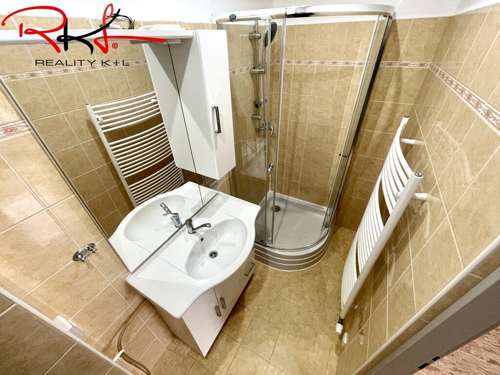 Vstupní chodba se vstupem do koupelny se sprchovým koutem, vstup na toaletu, komory a obytné místnosti s kuchyňským koutem. Nová kuchyňská linka vybavena spotřebiči (trouba, varná deska, digestoř atd.) je spojena s menším obývacím prostorem, dále pokračujeme do velké ložnice s úložným prostorem. Vytápění bytu je řešeno plynovým kotlem. Bytový dům se nachází ve velmi klidné, příjemné lokalitě v centru Mladé Boleslavi, kde najdete kompletní občanskou vybavenost.
