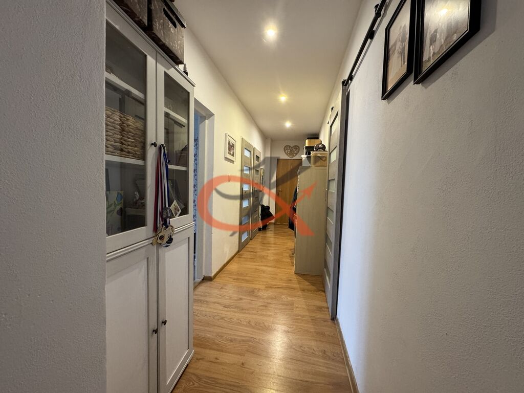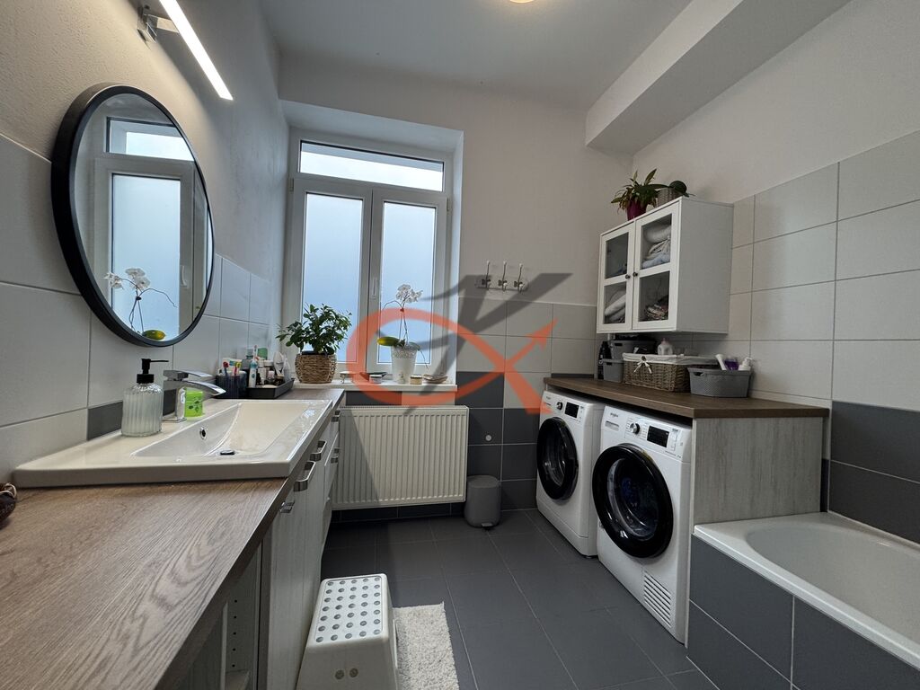 Byt zaujme svým moderním a útulným stylem – rozvody vody jsou v plastu, elektřina v mědi, na podlahách plovoucí podlahy a všechna okna jsou plastová. Kuchyňská linka je vybavena vestavěnými spotřebiči – indukční varnou deskou, horkovzdušnou troubou a myčkou nádobí. Praktickým doplňkem jsou nově instalované posuvné dveře, které šetří místo a dodávají interiéru elegantní vzhled.