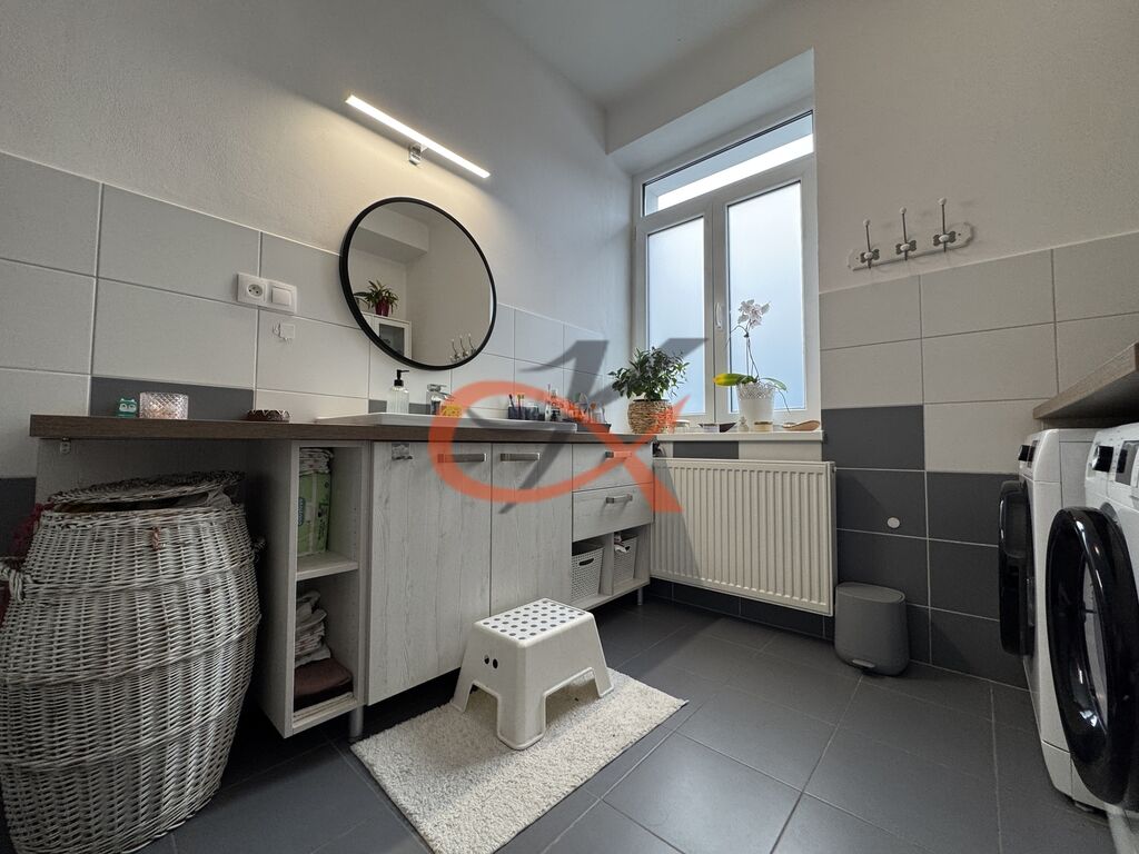 Koupelna s vanou je prostorná a oddělené WC přispívá k pohodlí celé rodiny. Všechny pokoje jsou neprůchozí, což zaručuje soukromí – ideální uspořádání pro ložnici, dětský pokoj a obývací pokoj. Vysoké stropy a dostatek denního světla vytvářejí příjemnou, vzdušnou atmosféru.