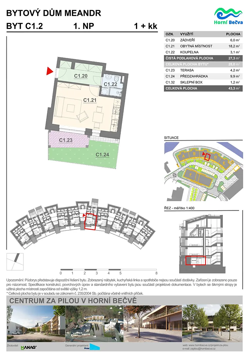 Nabízíme ke koupi moderní byt 1+kk o podlahové ploše 43,3 m² v připravovaném developerském projektu v malebné obci Horní Bečva. Byt se nachází v nízkopodlažním bytovém domě, situovaném v klidné lokalitě s krásnými výhledy na okolní beskydskou krajinu.