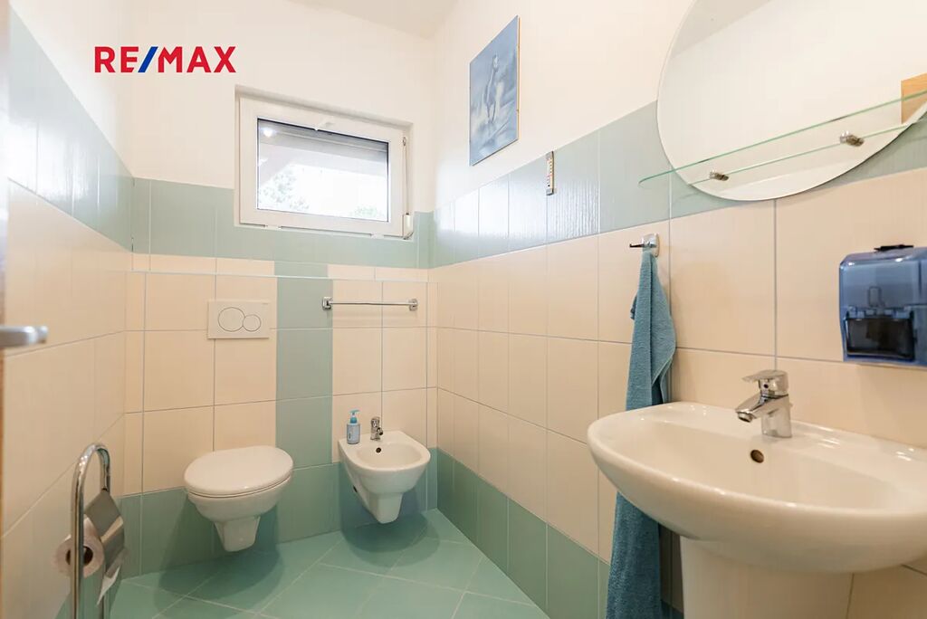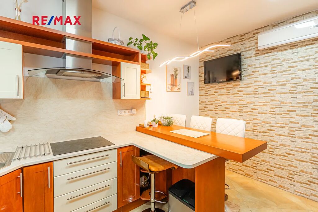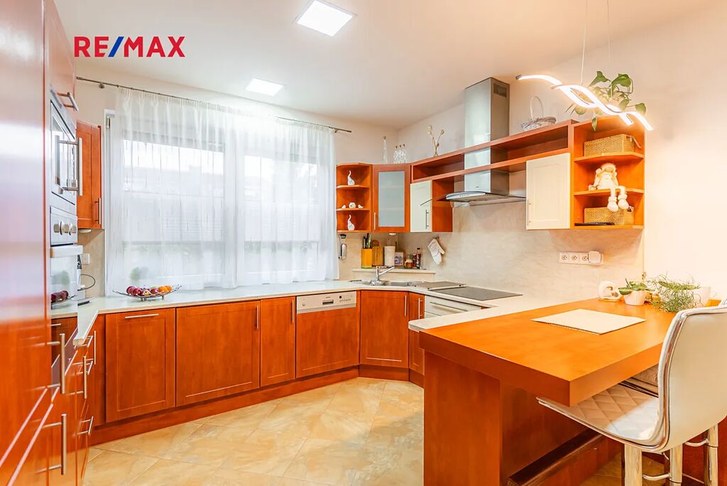 Dispozice domu je 3+1 s užitnou plochou 169 m². Kuchyň (12,35 m²) je samostatná, vybavená vestavěnými spotřebiči a barovým pultem. Dva prostorné pokoje (13 a 18 m²) poskytují dostatek místa pro rodinu, koupelna (10,5 m²) nabízí vanu, sprchový kout, podlahové topení. Samostatné WC s bidetem, technická místnost a praktická vstupní chodba s vestavěným botníkem dělají dům velmi funkčním.