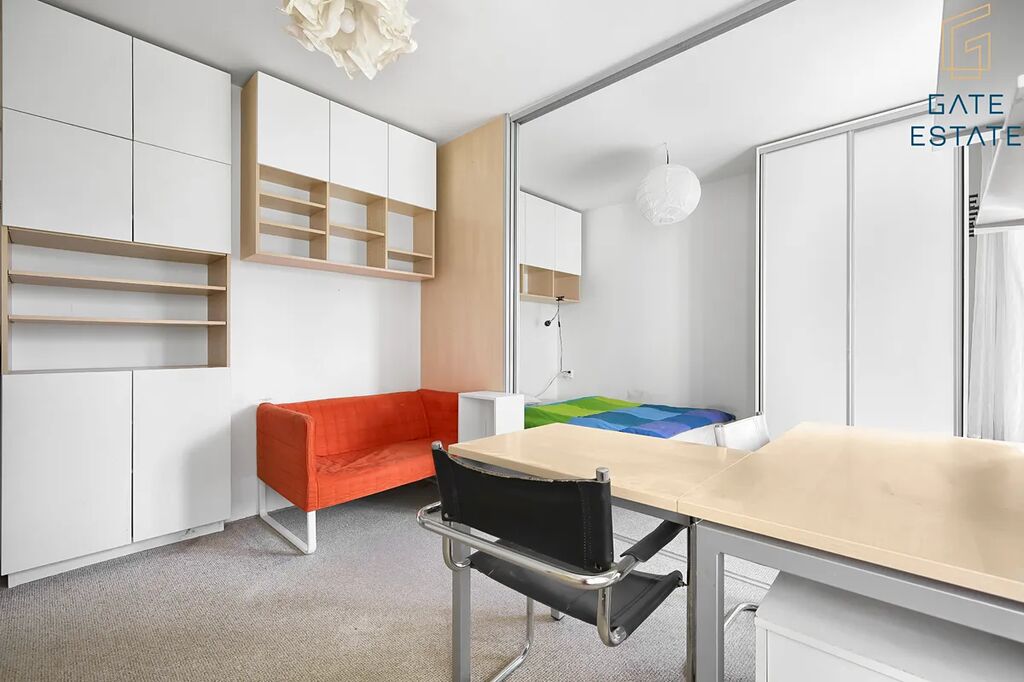 Byt na ulici Merhautova s dispozicí 1+kk, který není orientovaný k silnici, nabízí klidné a pohodlné bydlení. Vybavení bytu zahrnuje postel, pracovní stůl, židle, kuchyňskou linku se sklokeramickou varnou deskou, lednicí a dostatkem úložného prostoru díky šatním skříním na míru. Byt je zkolaudován jako ateliér.