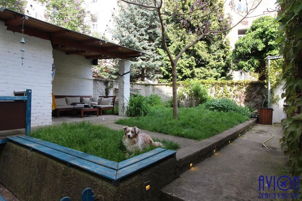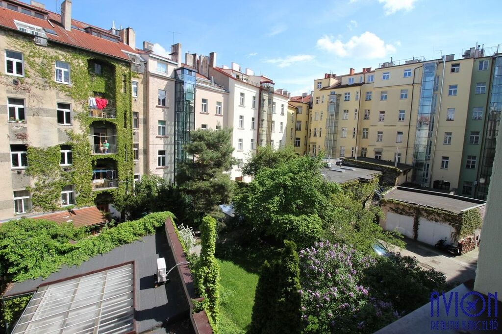 Byt se nachází v 1. patře historického domu s novou fasádou a novými okny. K dispozici je malý dvorek s pěkně udržovanou zelení.