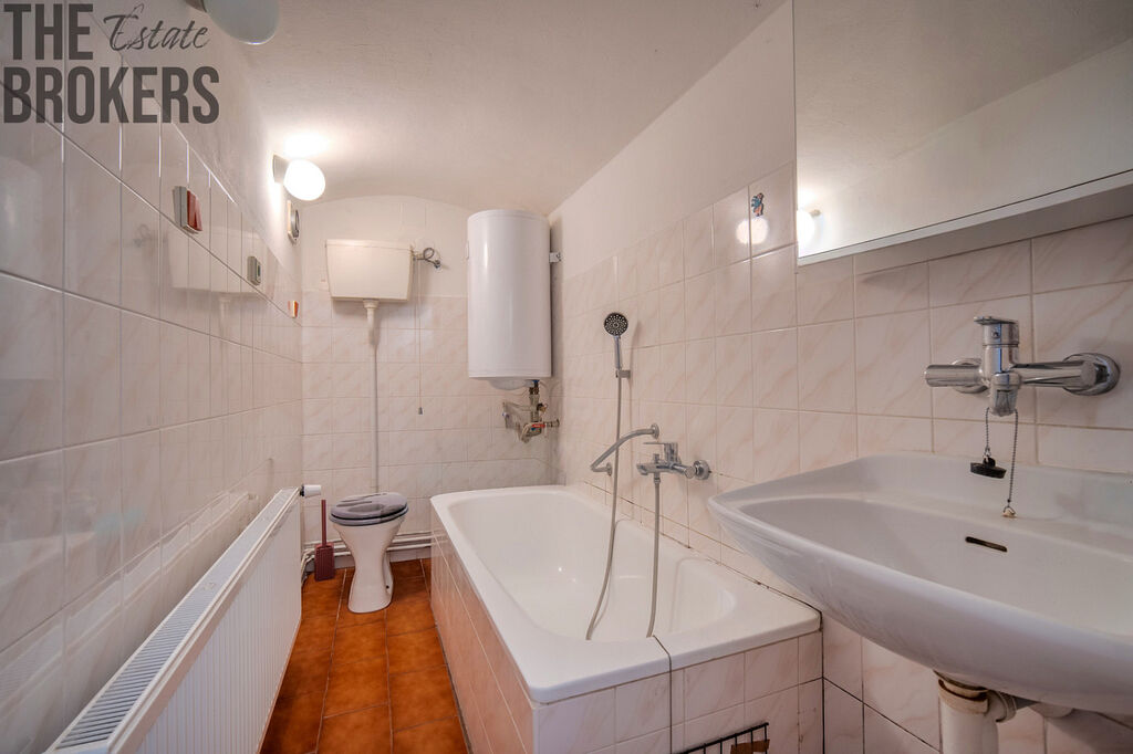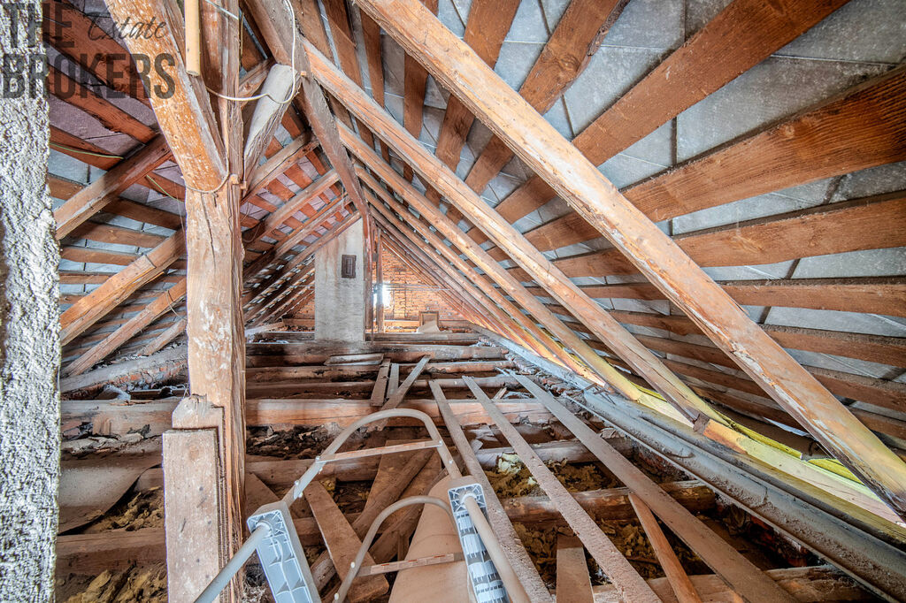 Fasáda i výmalby jsou tedy rovněž po nedávné úpravě. Statik potvrdil výborný stav střešních trámů, původní střecha tak vyžaduje případně pouze výměnu krytiny – dům má v současnosti jedno patro a půdu, ze které je možné vybudovat plnohodnotné druhé patro. Dům je napojený na obecní vodu a odpad je řešen žumpou s přepadem do kanalizace, do dvou let bude v obci zprovozněna centrální kanalizace s čističkou.