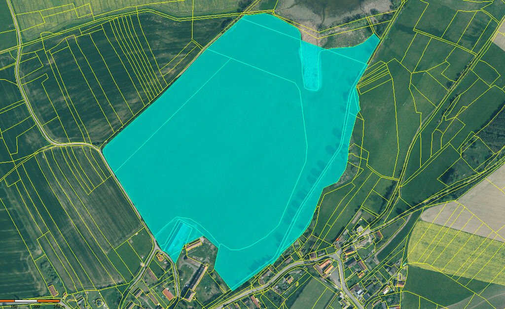 Na prodej soubor pozemků v obci Ježovy. Celková výměra pozemků je 214865 m². Přední část pozemku, která navazuje na obec, o výměře 3881 m² je v územním plánu vedena jako stabilizovaná plocha obytná smíšená - venkovského typu.