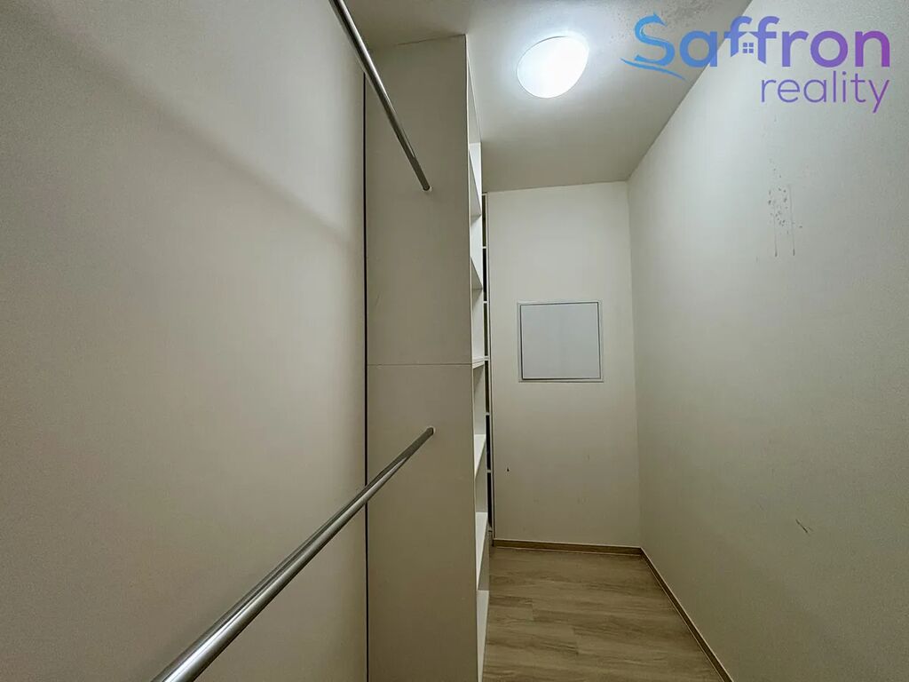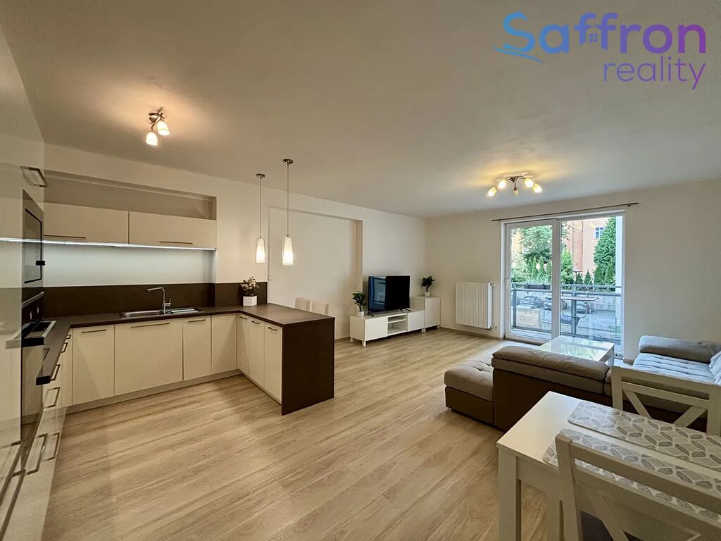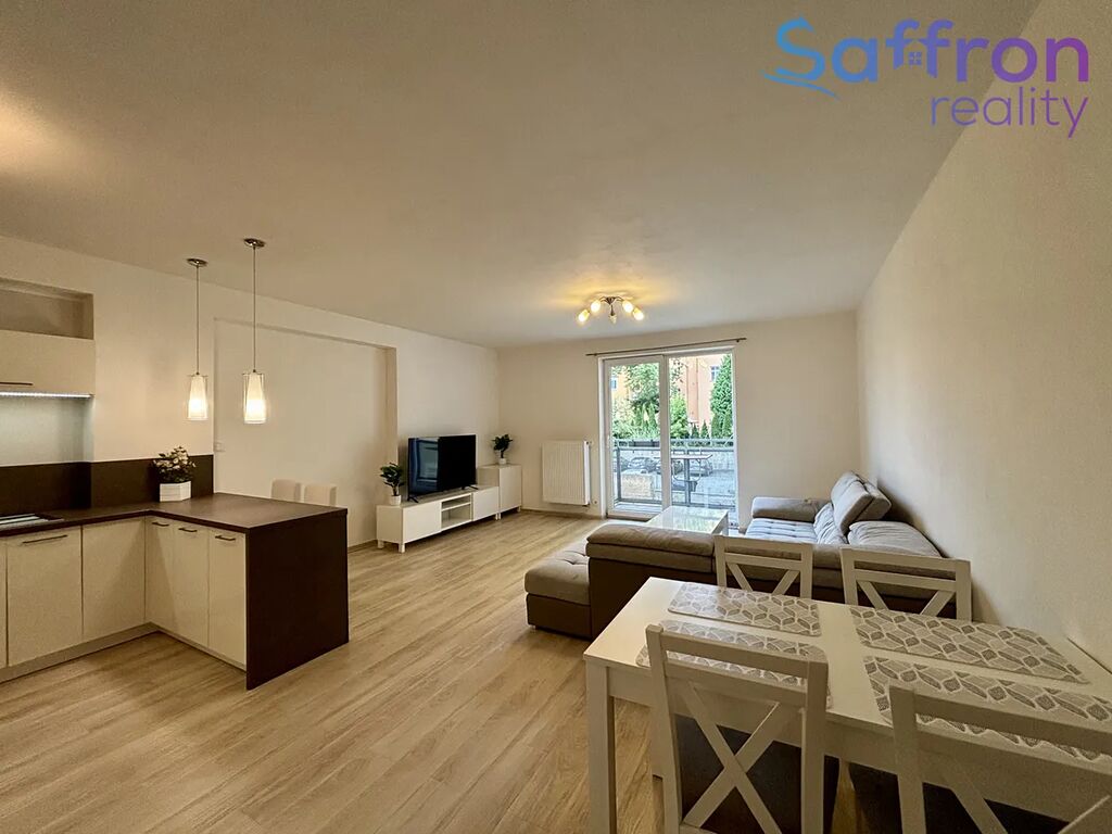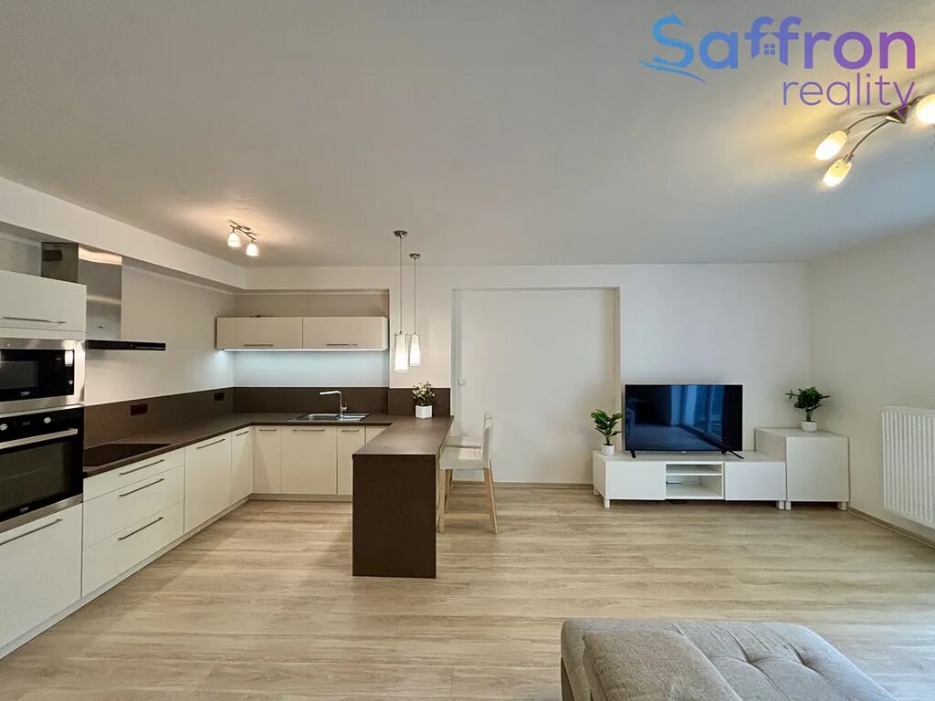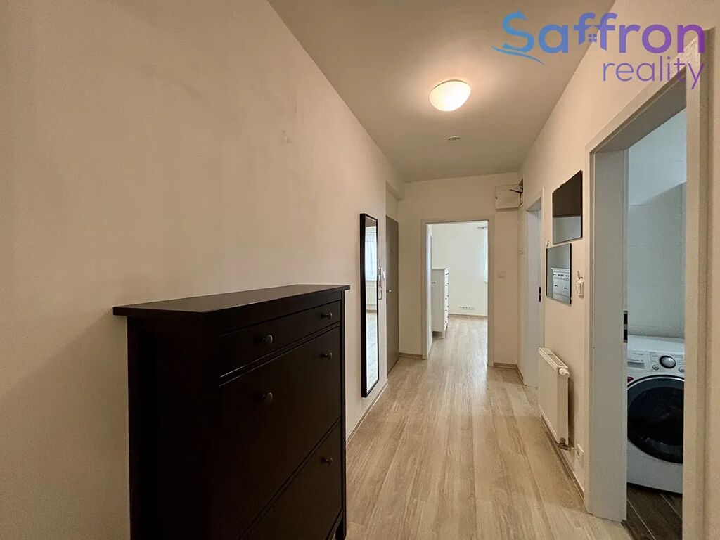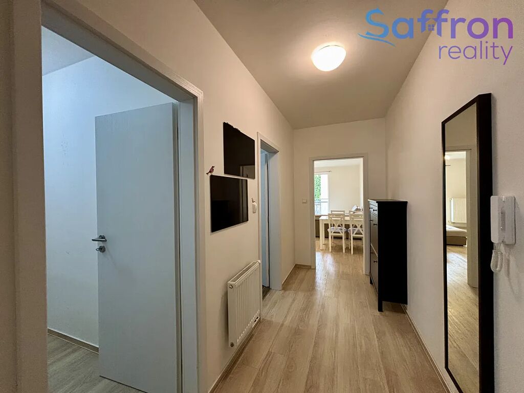 Byt působí velmi útulně a je kompletně vybaven. Ze vstupní předsíně je vstup do všech místností – do ložnice, šatny, koupelny a obývacího pokoje s kuchyňským koutem. Moderní kuchyňská linka je vybavena vestavěnými spotřebiči včetně myčky, trouby, mikrovlnné trouby, sklokeramické desky, digestoře a lednice. Obývací prostor nabízí pohodlné posezení, jídelní kout a přímý vstup na balkon orientovaný do klidného vnitrobloku.