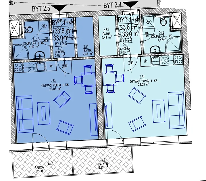 - byt č. 2.5. v 2.NP CD22 o velikosti 39,01 m2 včetně balkonu za cenu 4.470.000,- Kč