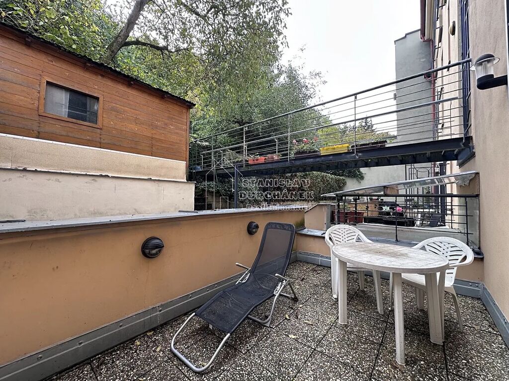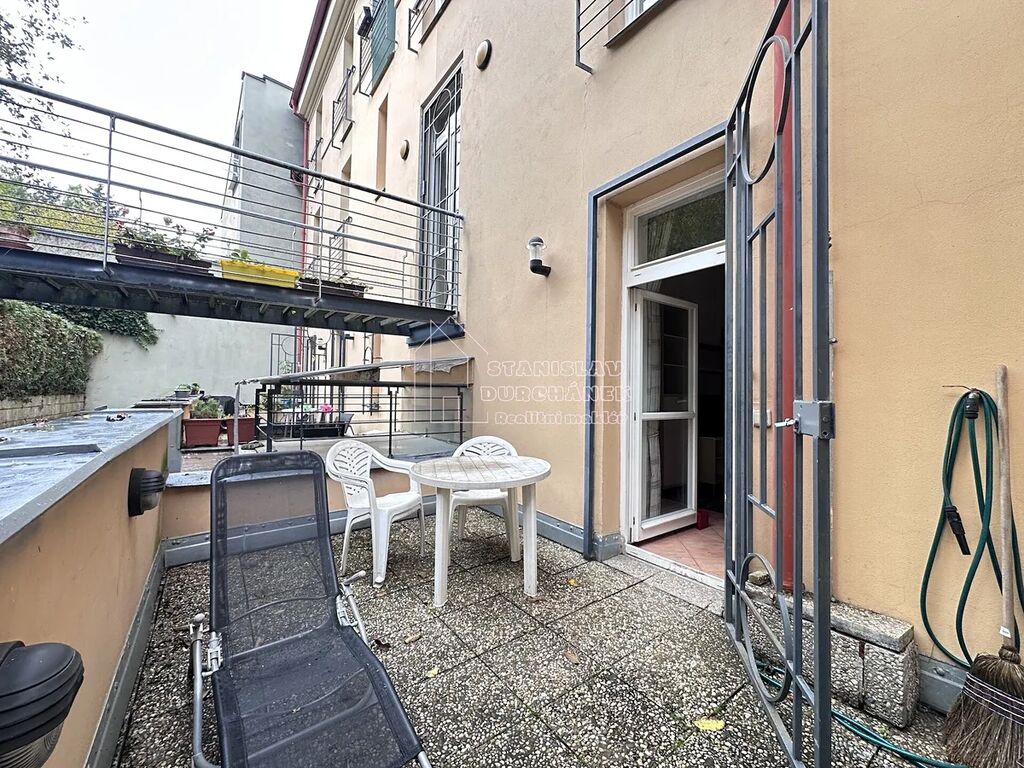 Velkou výhodou je vlastní terasa 9 m2 s orientací do klidné zahrady, kterou můžete spoluužívat (např. pro grilování).