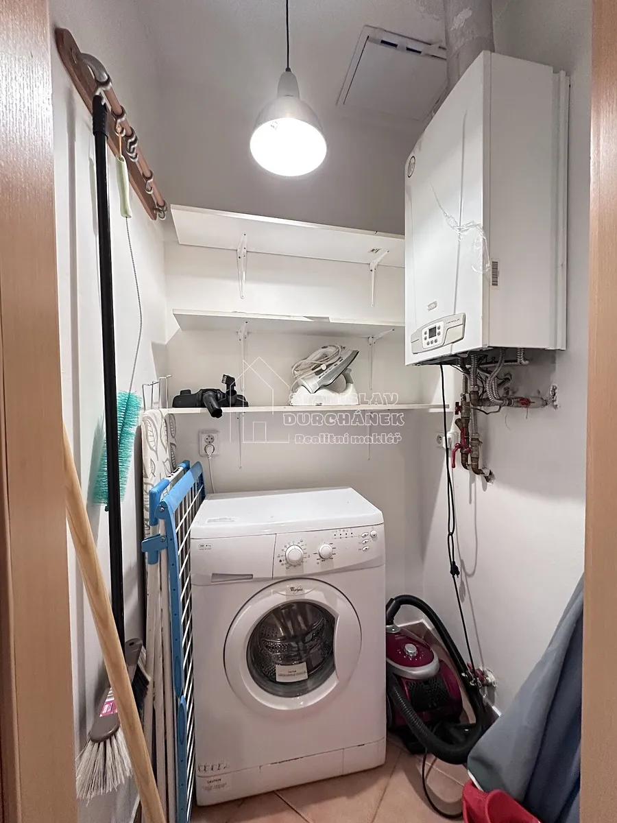 Byt se nabízí jako vybavený nábytkem a spotřebiči (viz foto). V koupelně je sprchový kout, WC a bidet. Součástí bytu je též komora, kde je umístěna pračka a vlastní plynový kotel na topení a ohřev vody.