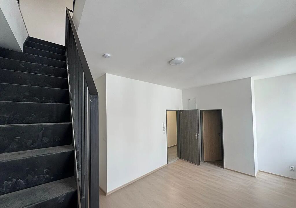 Byt se nachází v kompletně zrekonstruovaném domě a prošel důslednou modernizací, která klade důraz na kvalitní materiály, nadčasový design a maximální funkčnost. Interiér je koncipován jako otevřený a vzdušný prostor s velkými okny, které zajišťují dostatek denního světla, a elegantním schodištěm vedoucím do horního patra. Koupelna je vybavena moderním sprchovým koutem a toaletou, přičemž veškeré rozvody a přípojky jsou připraveny pro instalaci kuchyňské linky dle vlastních představ. Byt je rovněž nachystán na instalaci klimatizace, což zvyšuje komfort budoucího uživatele.