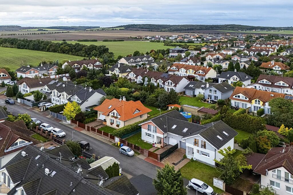Dům nabízí komfortní dispozici 5+kk s dostatkem prostoru pro celou rodinu – prostorný obývací pokoj s přímým vstupem na zahradu, kuchyň s jídelním koutem, čtyři ložnice, koupelna, dvě toalety, technické zázemí a garáž.