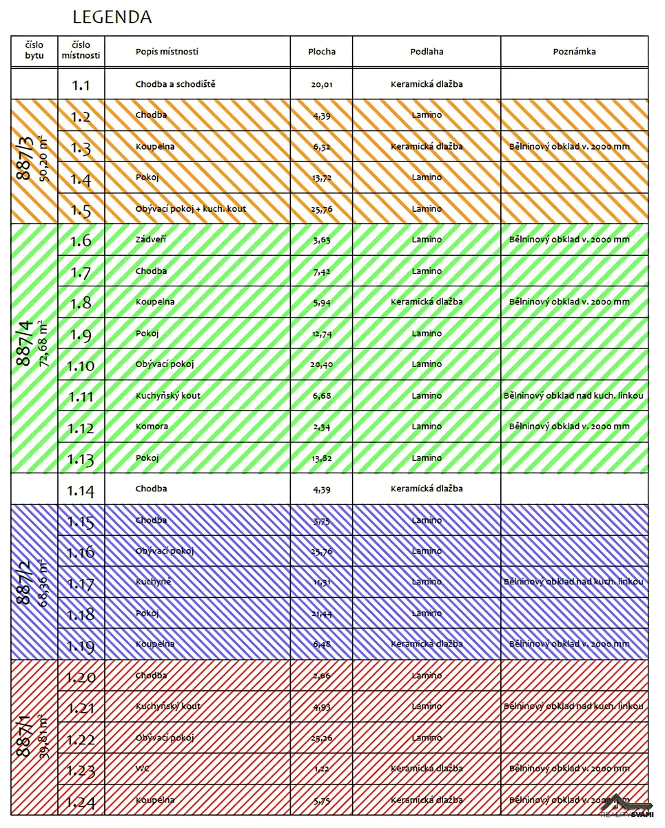 1NP – 3+kk, 72,68 m² + sklep 8,2 m²