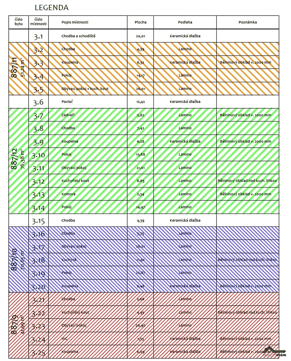 V nabídce je zbývajících 10 bytových jednotek těchto dispozic a velikostí: