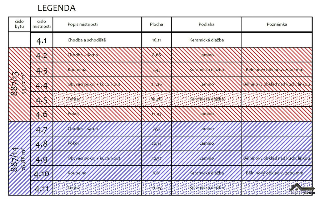 Bytový dům má celkem 14 bytových jednotek, z toho již 4 prodané do osobního vlastnictví.