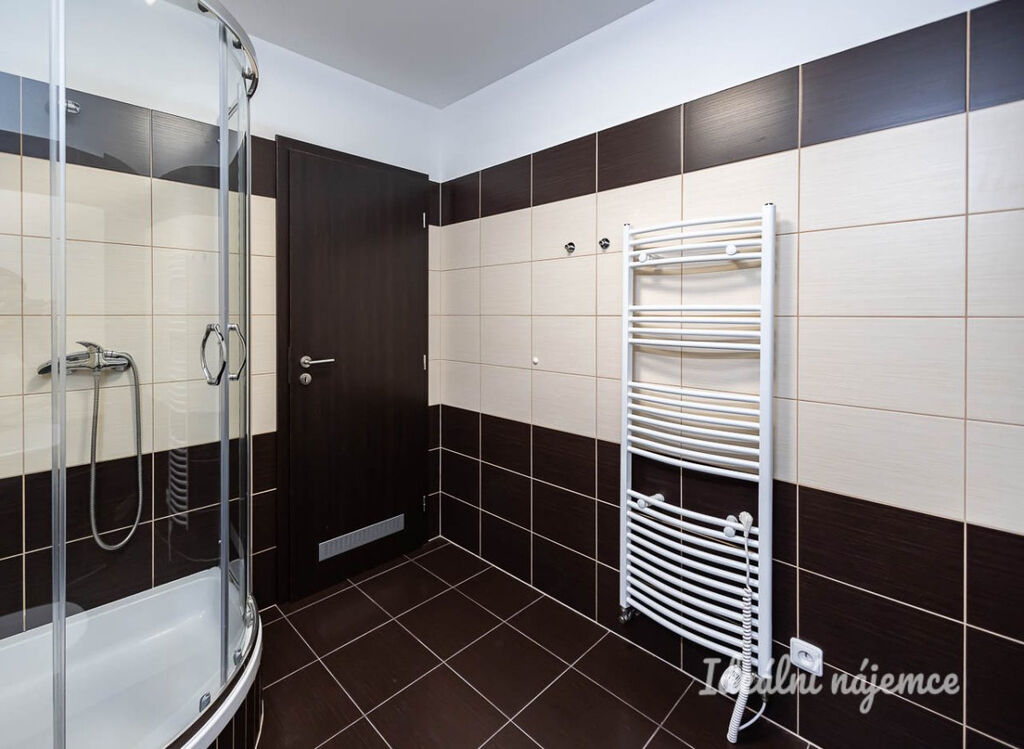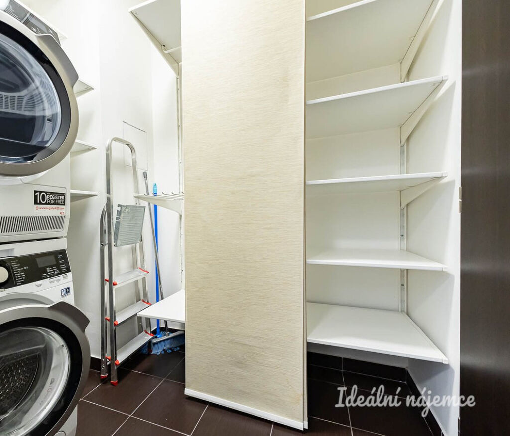 Sekundární koupelna nabízí sprchový kout a toaletu. Dále se zde nachází komora, ve které nalezneme pračku a sušičku.