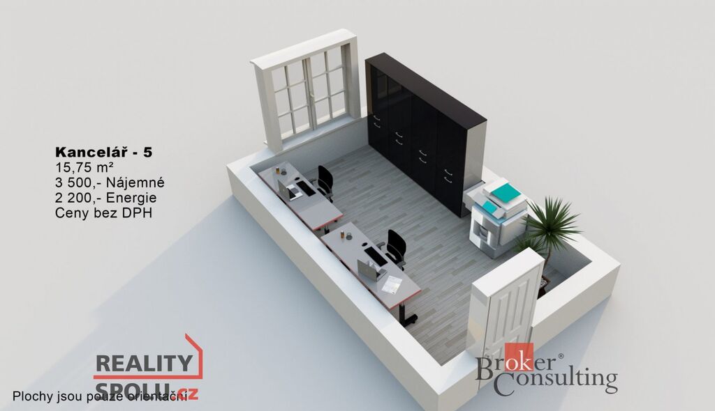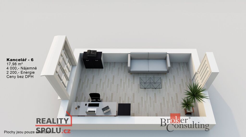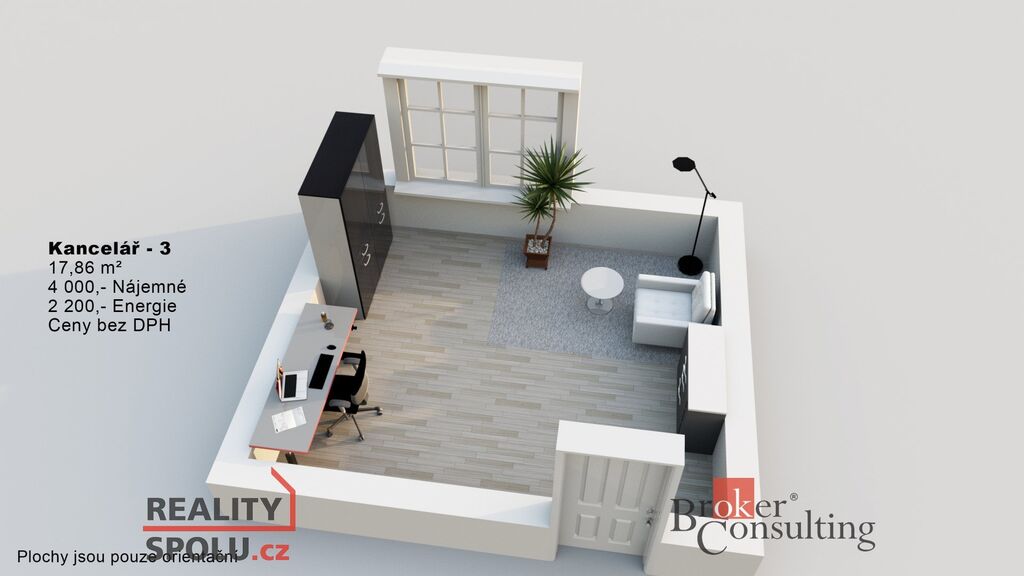 Cena pronájmu je 4 400 Kč + DPH a náklady na energie a služby jsou 2200 Kč + DPH. Provize realitní kanceláři je jeden nájem + DPH.