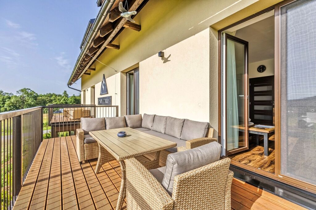 • 4× 2+kk, 45 m² – tři apartmány s balkonem, jeden apartmán s prostornou terasou (slunný výhled na svahy).