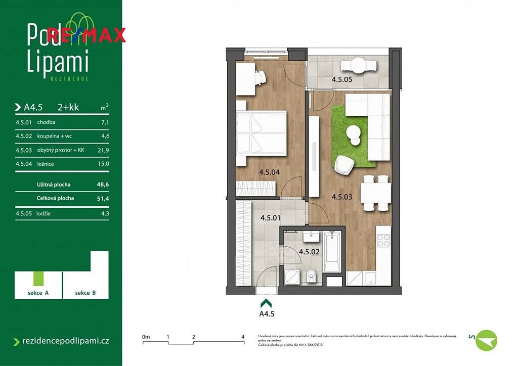 Nabízím Vám k pronájmu byt s dispozicí 2+kk o celkové ploše 53 m² plus lodžie (5 m²) v novostavbě bytového domu Rezidence Pod Lipami ve Štrossově ulici v Pardubicích.