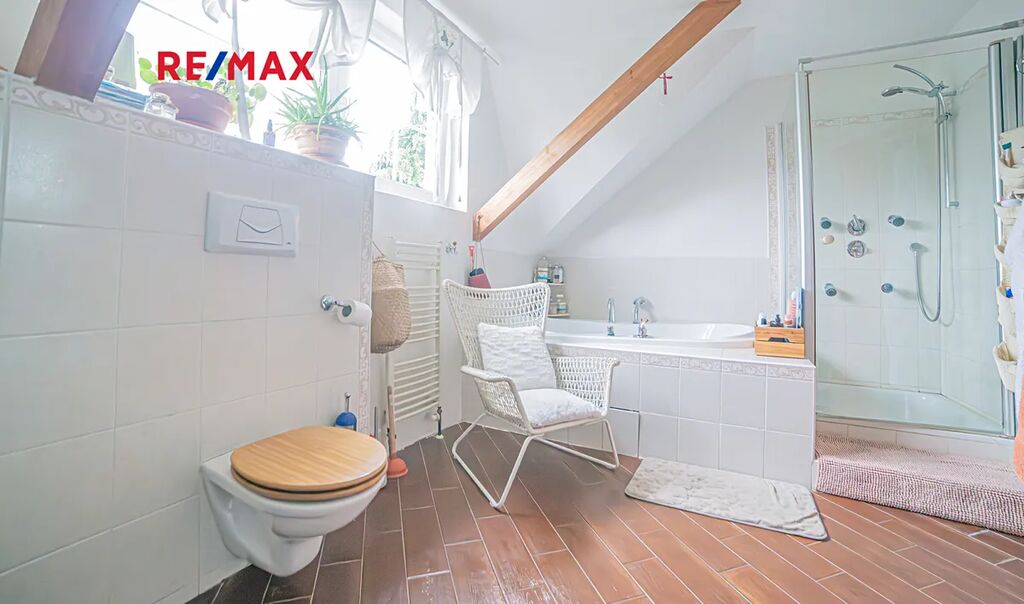 Dům je velmi prostorný a poskytne dostatek pohodlí i větší rodině. Součástí je velká zahrada, garáž, venkovní kryté posezení a přístřešek na dřevo. Vytápění je zajištěno moderním elektrokotlem, který přispívá k pohodlnému a efektivnímu provozu domácnosti, příjemnou atmosféru zajistí krbová kamna v obývacím pokoji. Krásná, vzrostlá zahrada vytváří soukromou oázu klidu, kde můžete nerušeně relaxovat, trávit čas s rodinou nebo si užívat letní večery v naprostém soukromí.