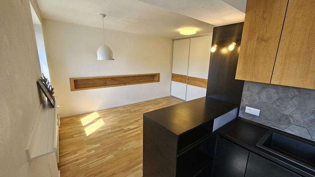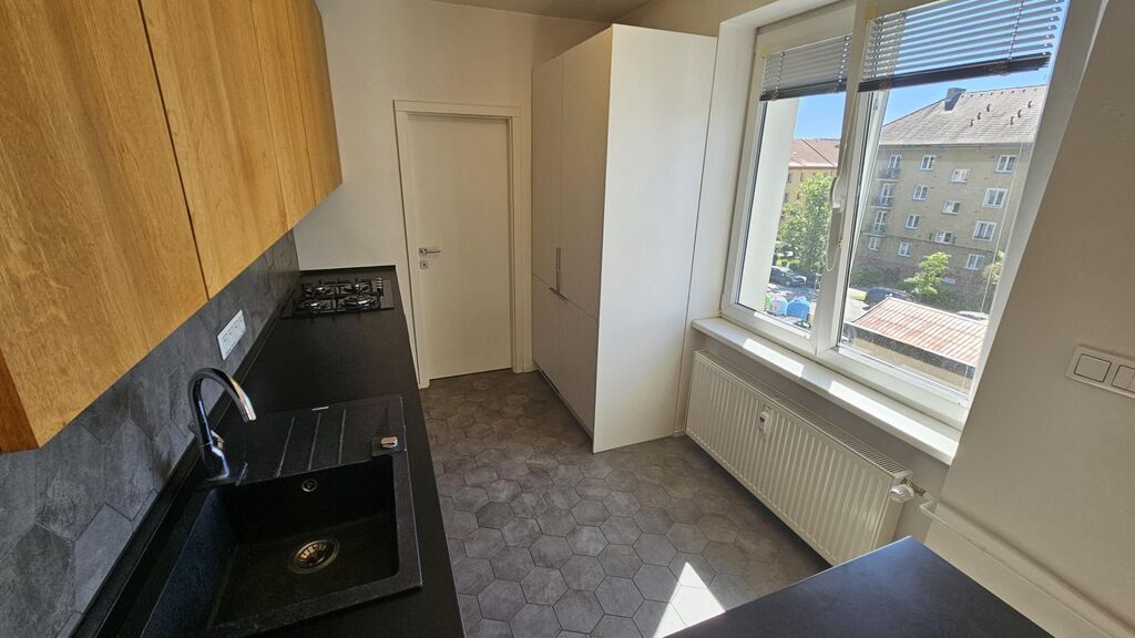 Pronájem kompletně rekonstruovaného bytu v osobním vlastnictví o velikosti 2 + 1 v Příbrami VII, ulice 28 října. 186. Byt se nachází v opraveném domě / nová zateplená fasáda, nová střecha, solární ohřev teplé vody, vlastní kotelna / ve 2.patře / 3.NP /. V domě není výtah. Velice žádaná lokalita - velké parkoviště před domem. Byt byl opravený před 4 roky. Kompletní nové rozvody elektro, vody a odpadu, jinak situované místnosti a koupelna, velké množství vestavných skříní + 2 šatny a prostor pro pračku a sušičku / v bytě je pračka a sušička /. Nepotřebujete do bytu další skříně. Okna z bytu jsou na slunnou stranu skoro na jih. Byt se pronajímá i včetně kompletní kuch. linky včetně všech spotřebičů / myčka, lednička, mrazák, sporák a trouba /, pračky a sušičky v komoře. V okolí veškerá občanská vybavenost i MHD i PID. Nájemné 15.900,-Kč + záloha na služby 4.100,-Kč včetně zálohy na elektřinu a plyn = 20.000,-Kč. Platí se 1 x kauce 20.000,-Kč a provize 20.000,-Kč. Podrobné informace v RK. Prohlídky bytu po domluvě. V bytě končí nájemníci - volné od 1.11.2025.