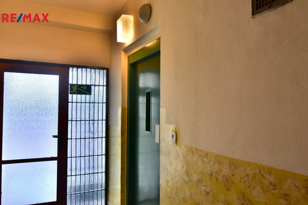 Byt 1+kk, 30 m2 se nachází v 8.NP/ze 12.NP, součástí bytu je komora, která je umístěna ve spojovací chodbě na patře bytu. K užívání jsou 2 výtahy.