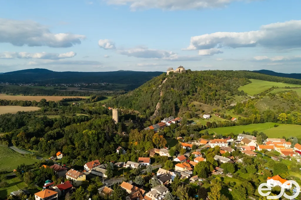 Žebrák – místo, kde se snoubí historie s přírodou. Příjemné městečko s přibližně dvěma tisíci obyvateli leží v podhůří Křivoklátských lesů a v dohledu ikonických hradů Točník a Žebrák. Díky poloze u dálnice D5 je výborně dostupné – autem jste v Praze i Plzni za půl hodiny. Samotný dům stojí v klidné části města, v prostředí chráněné krajinné oblasti Křivoklátsko, která zaručuje čistou přírodu a jistotu, že okolí zůstane zachováno bez velkých developerských zásahů.