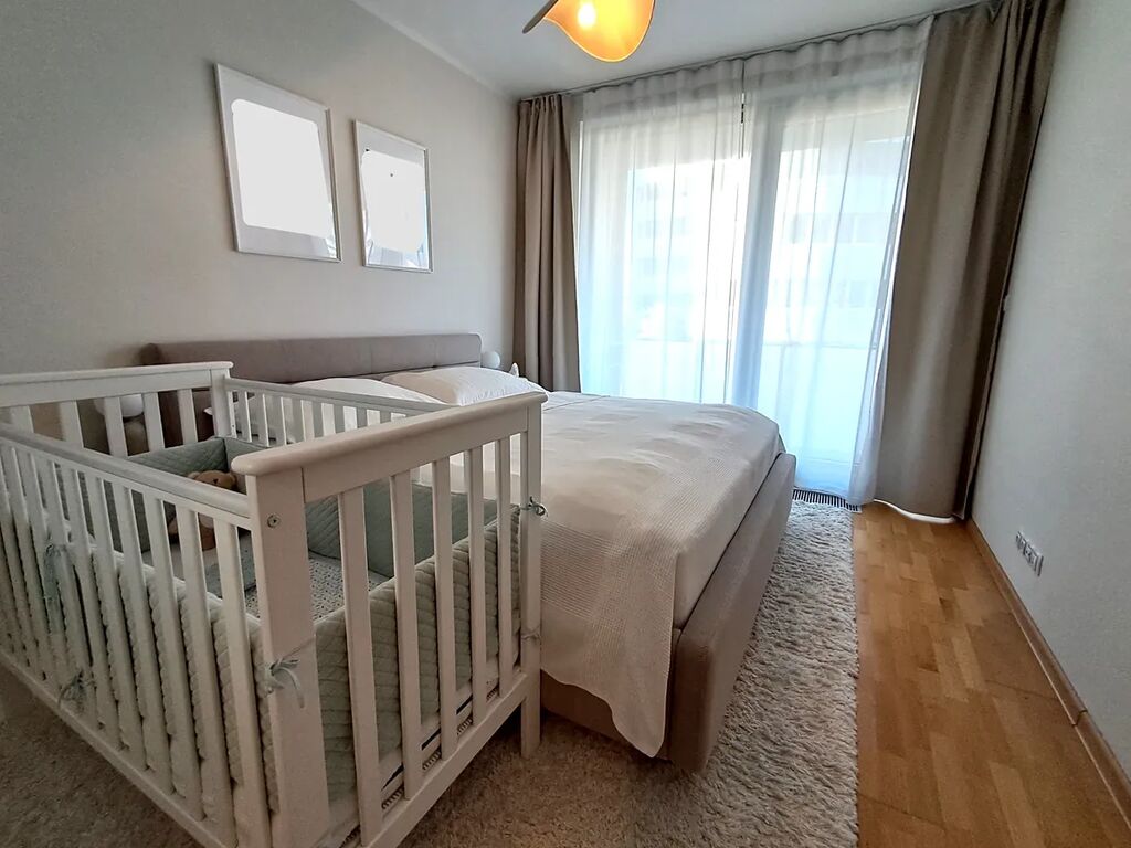 Bytová jednotka sestává z předsíně, dvou ložnic, ze kterých je vstup na balkon, dále obývacího pokoje s plně vybaveným kuchyňským koutem, pracovny-zimní zahrady, samostatného WC, koupelny s vanou a šatny. Vyjma parkovacího stání a parkovacího boxu k bytu náleží skladovací prostor o výměře 4 m2.