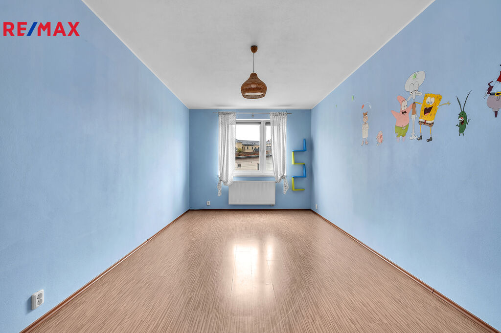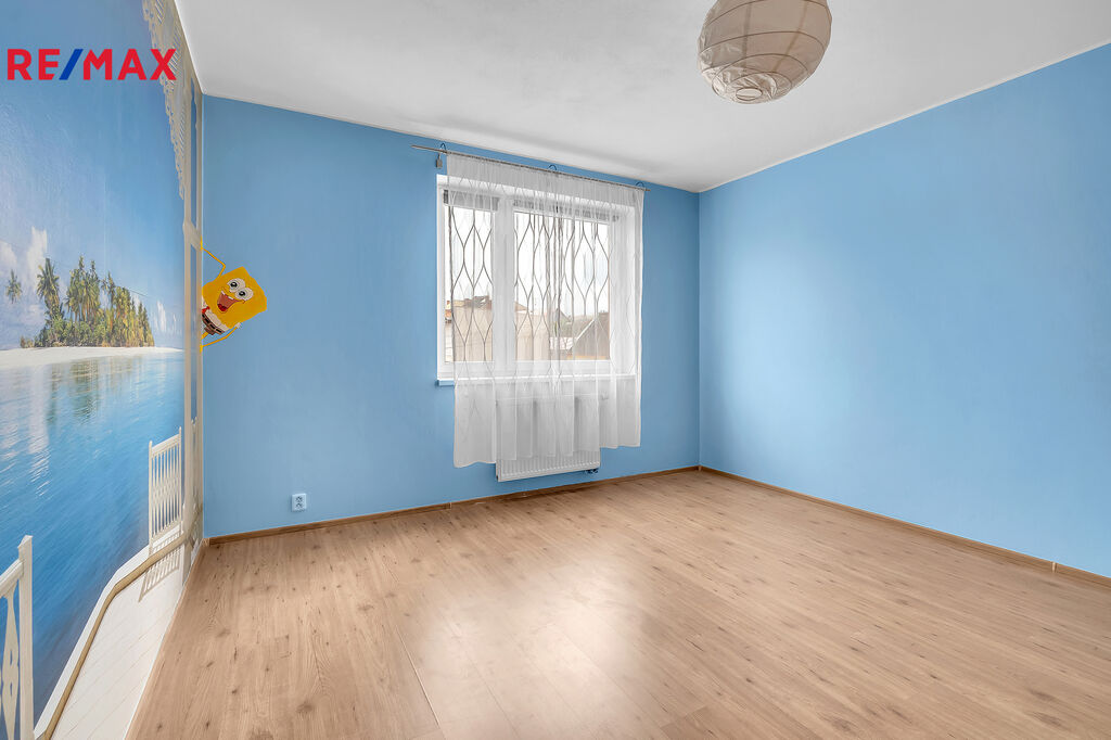 vstupní chodba s vestavnou skříní, obytná kuchyň s myčkou, indukční deskou, elektrickou troubou, mikrovlnkou, ledničkou a dřezem, jídelna s jídelním stolem a židlemi, obývací kout s pohovkou a tv stolkem, ložnice s vestavnou skříní, dětský pokoj, koupelna s vanou, WC samostatné.