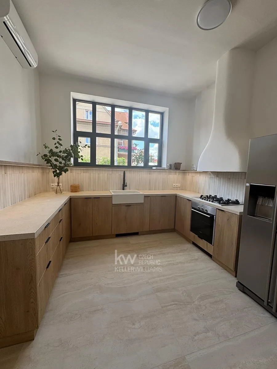 Nabízíme k pronájmu krásný rodinný 3-podlažní dům se zahradou a garáží pro 3 auta po kompletní právě dokončené rekonstrukci.