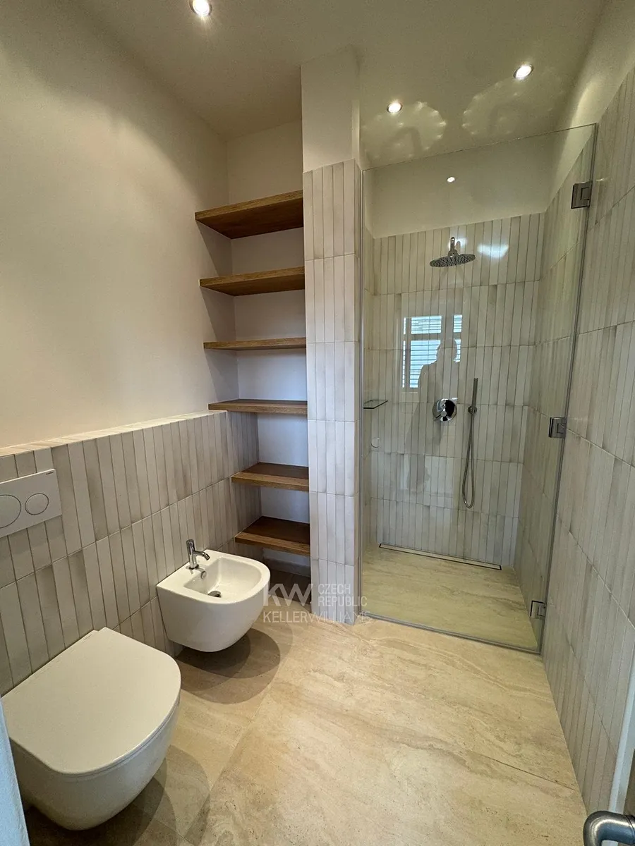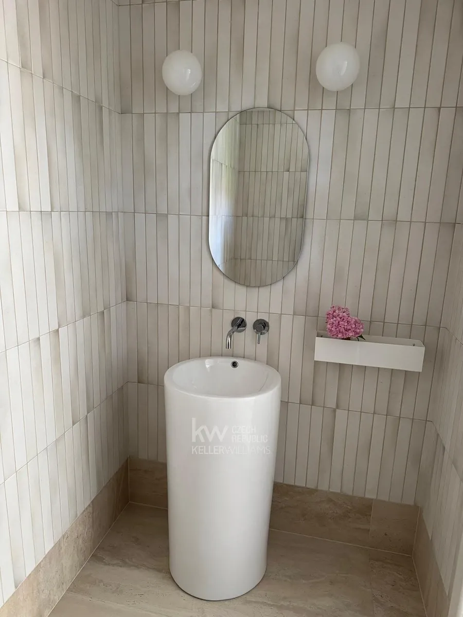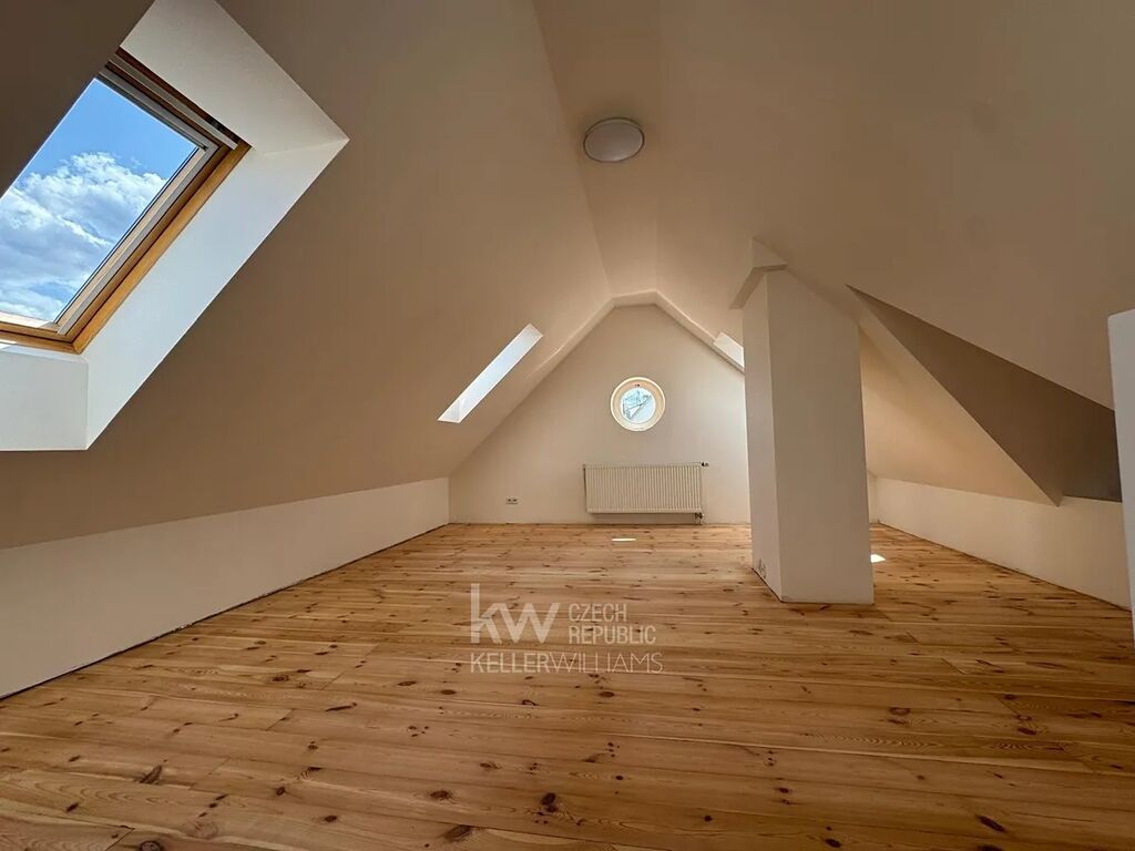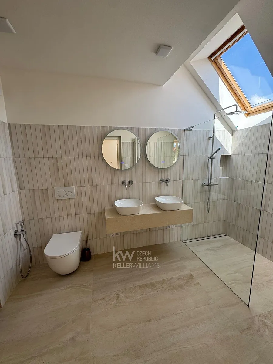 Tento nádherný dům ma samostatnou plně vybavenou kuchyň, 5 ložnic, přičemž jedna z ložnic je oddělitelná na samostatný apartmán, 4 koupelny, 3 samostatná WC, mnoho teras a balkonu s výhledy do malebného okolí této vyjímečné lokality. K dispozici pro relaxaci je zde sauna, dále funkční krb, venkovní gril, vinotéka. Horní patro - galerie má zajímavý prostor , dá se teoreticky použít na další ložnici, jen tam není koupelna. Všude jsou instalována nová okna, dřevěné parkety, kamerový sytém. Další parking pro hosty je na příjezdové cestě.