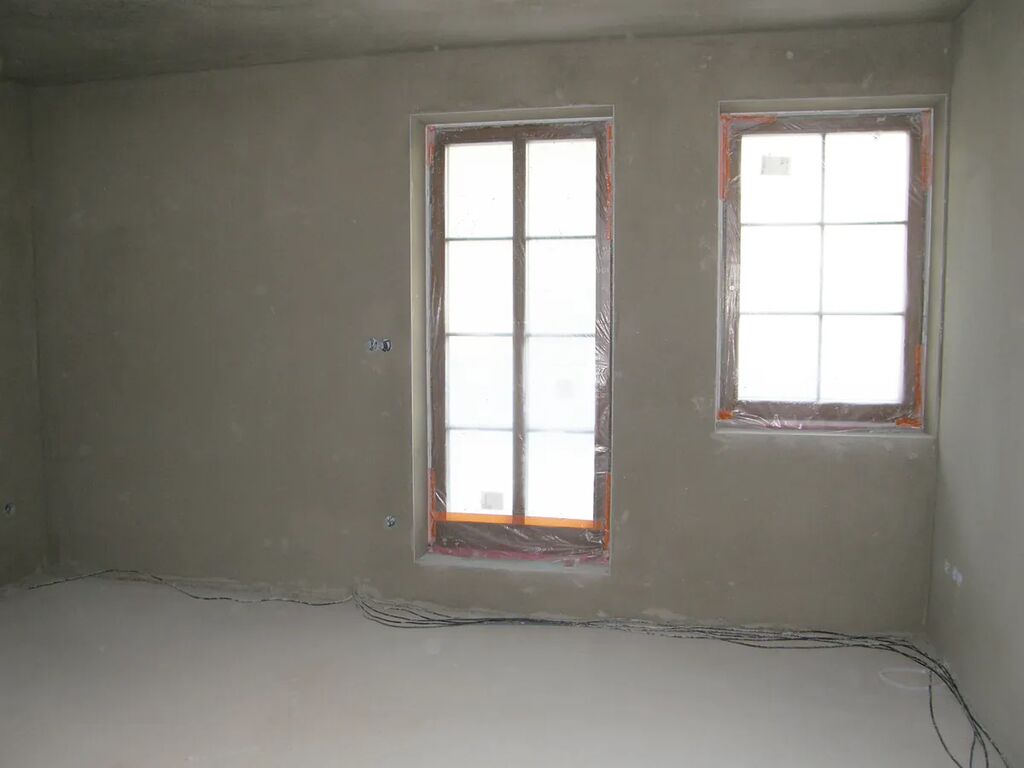 Aktuality z výstavby domu: dokončuje se fasáda domu a v bytech se provádí vnitřní omítky a betonové podlahy a zahajují se práce na obkladech v koupelnách jednotlivých bytů