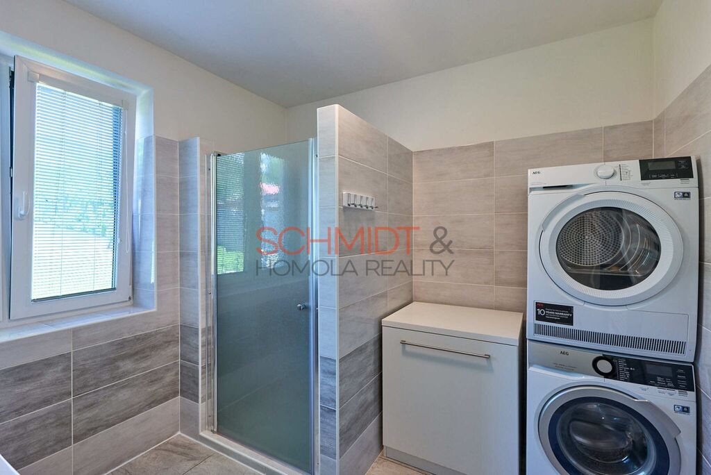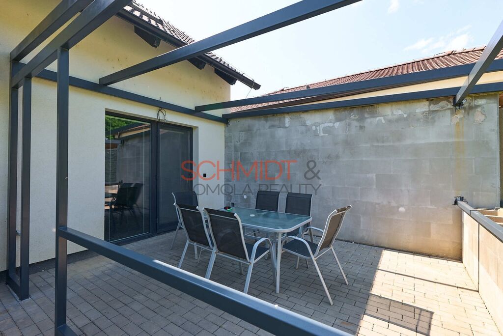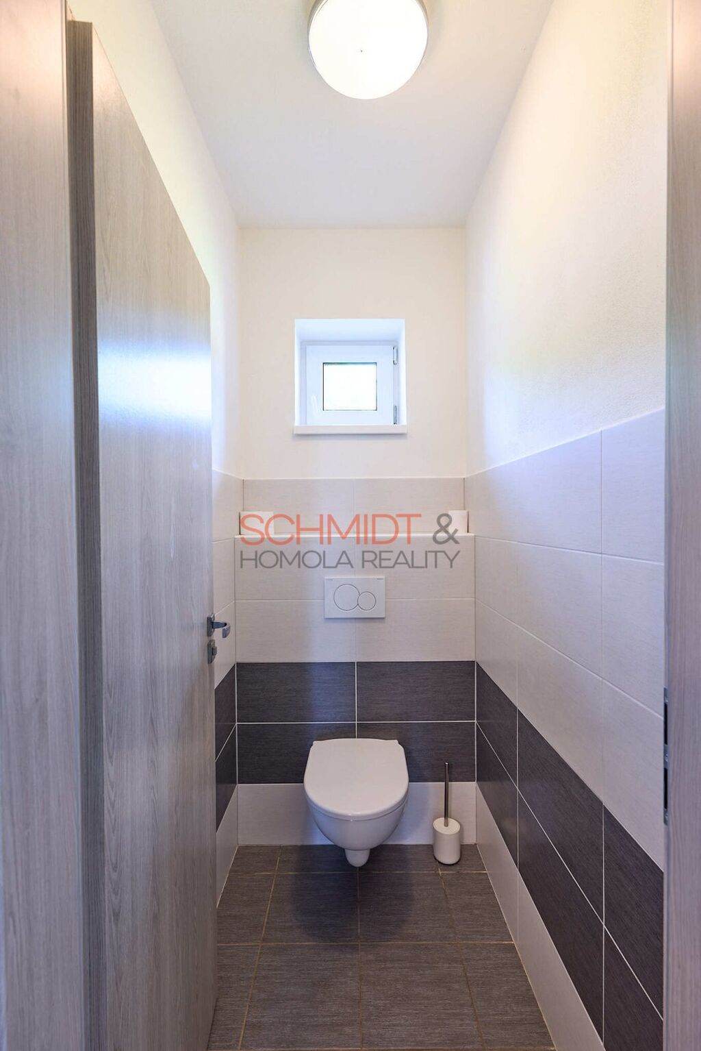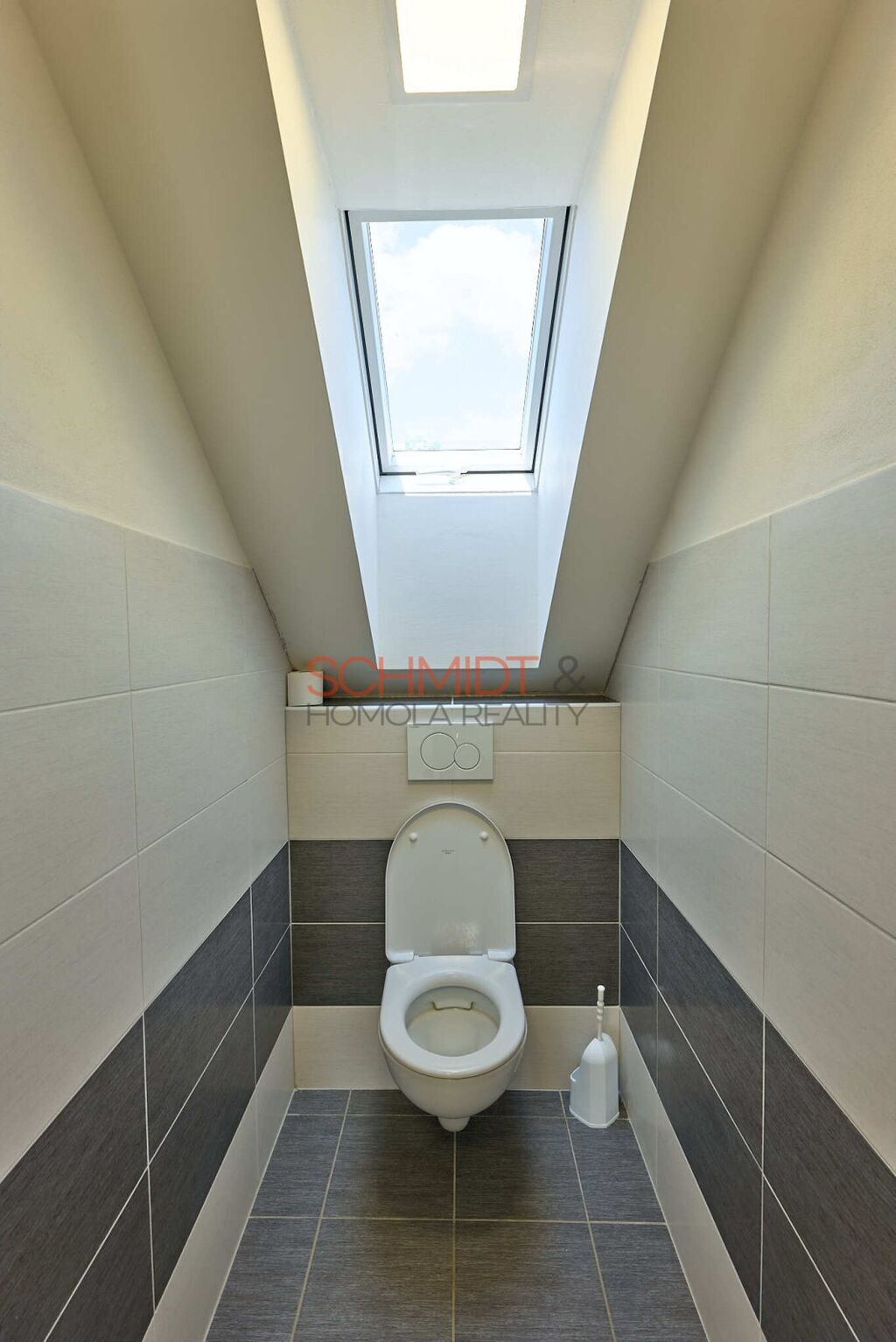 Dispozice uspokojí i větší rodinu. V přízemí najdeme prostorný obývací pokoj s kuchyňským koutem a vstupem na terasu, ložnici, koupelnu se sprchovým koutem, oddělené wc, zádveří při vstupu z ulice i do zahrady. V první podlaží potom tři samostatné neprůchozí pokoje, šatnu, oddělené wc a koupelnu s vanou.